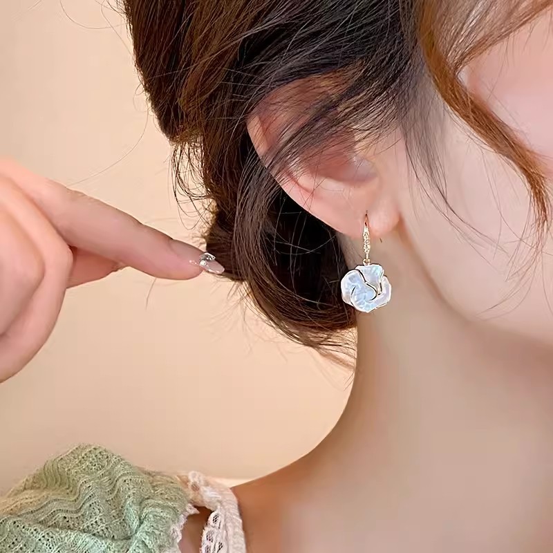 商品名称:山茶花朵耳环女小众轻奢气质高级感耳钉2024新款爆款独特耳坠耳饰