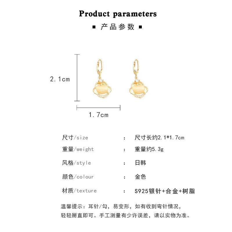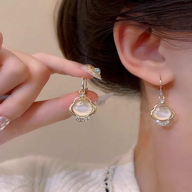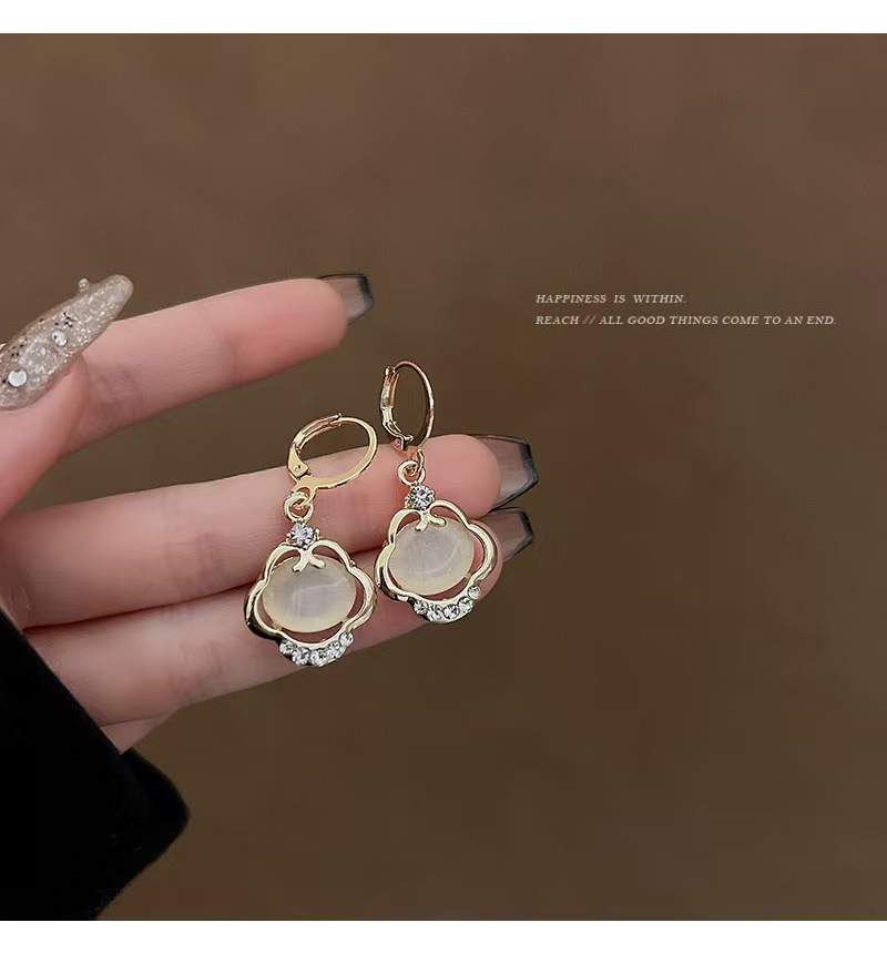 商品名称:彤彤兔 S925耳扣猫眼石如意锁耳环女高级感百搭网红复古简约气质耳饰