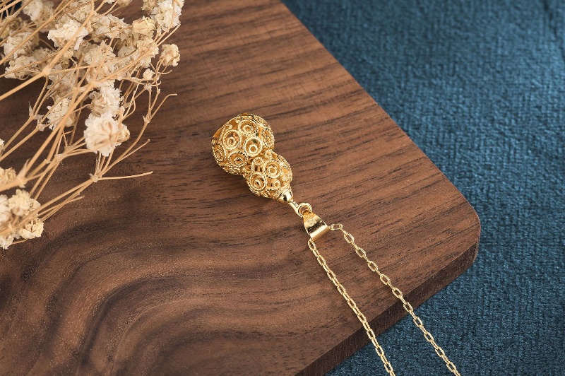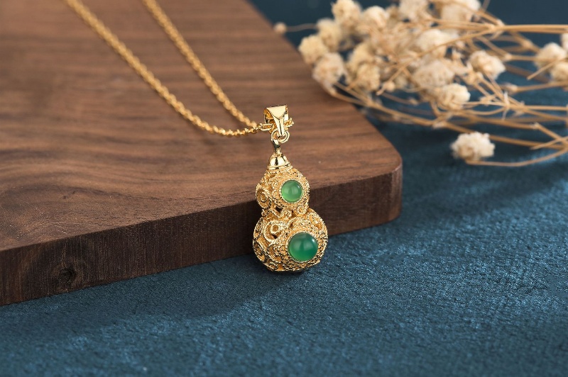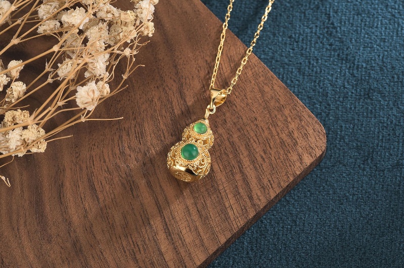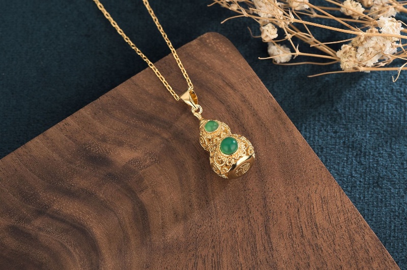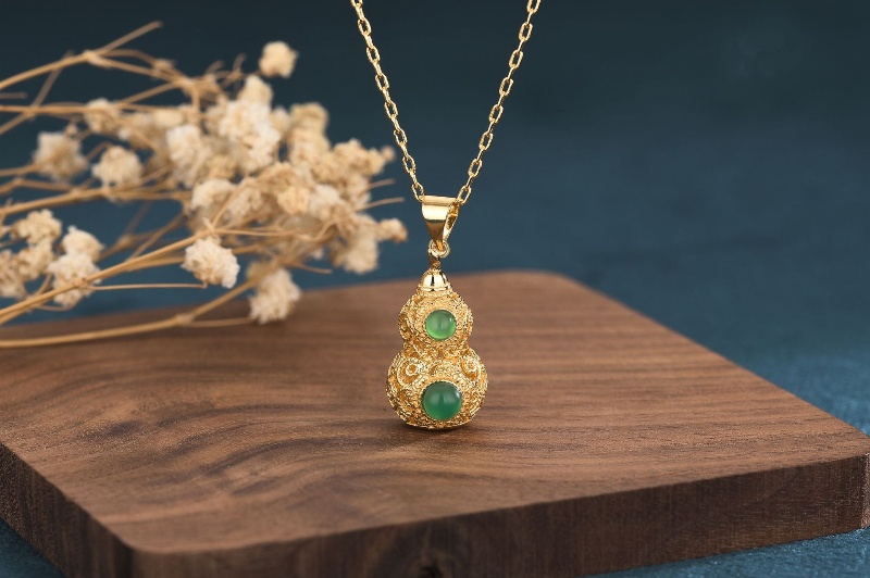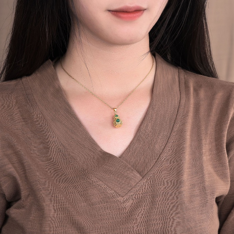 彤彤兔 国风设计名族风铜古法金镶嵌合成玉石葫芦项链