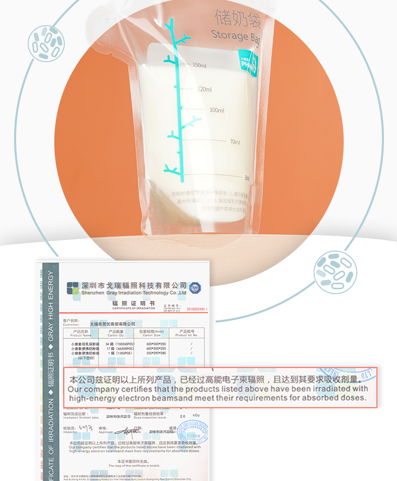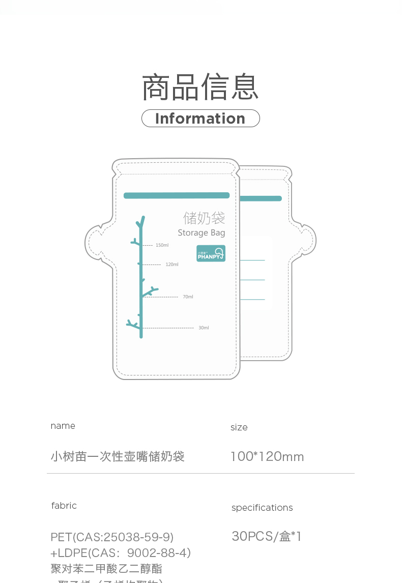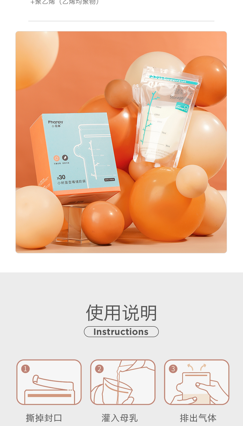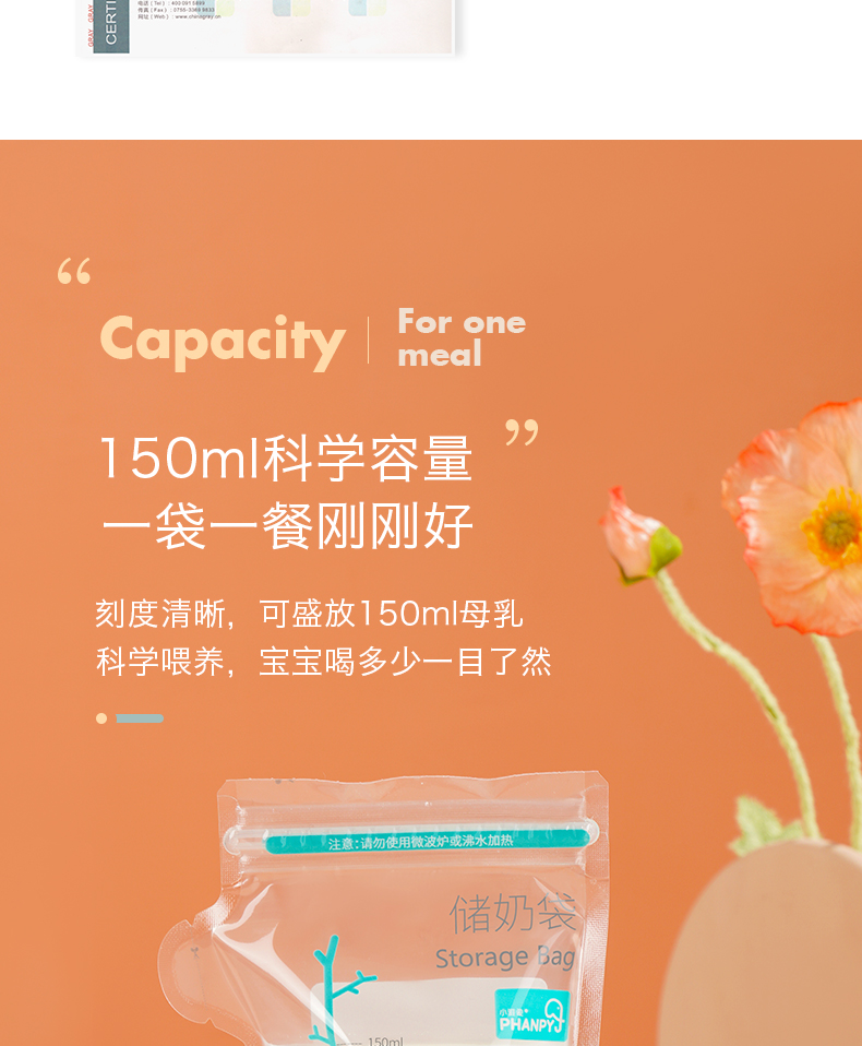 商品名称:小雅象 PHANPY储奶袋150ml一次性装奶袋母乳存奶人奶保鲜袋奶水冷冻存奶袋