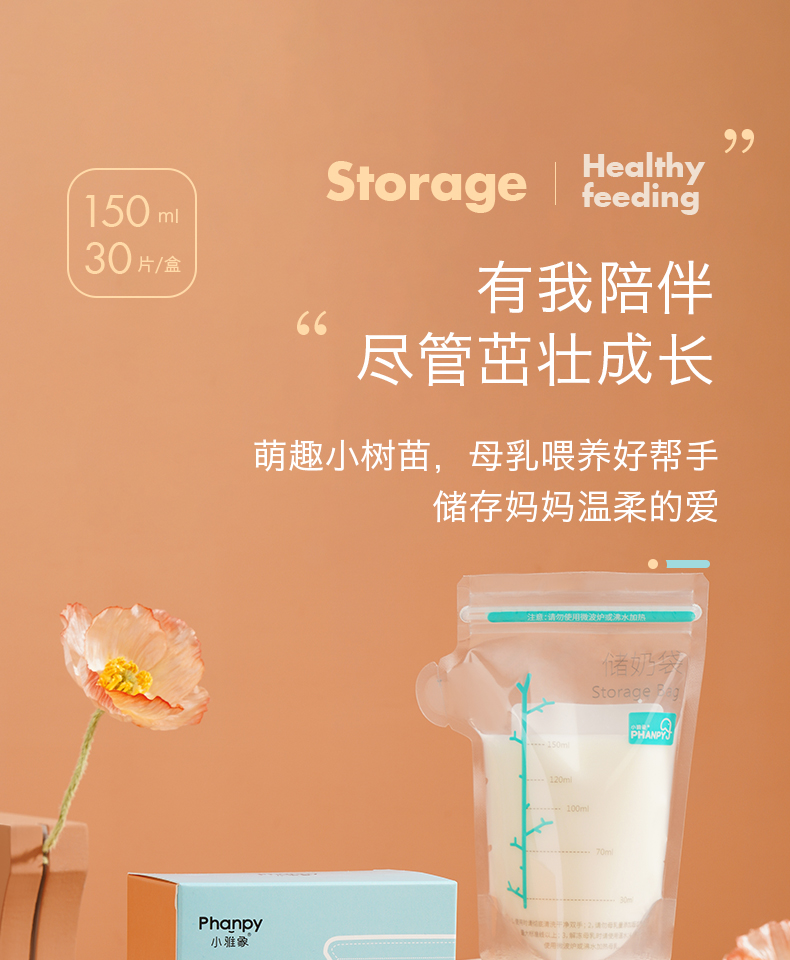 小雅象 PHANPY储奶袋150ml一次性装奶袋母乳存奶人奶保鲜袋奶水冷冻存奶袋
