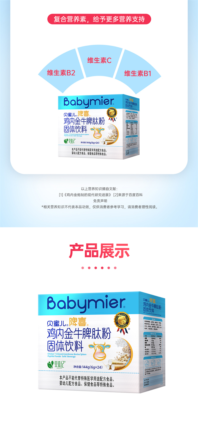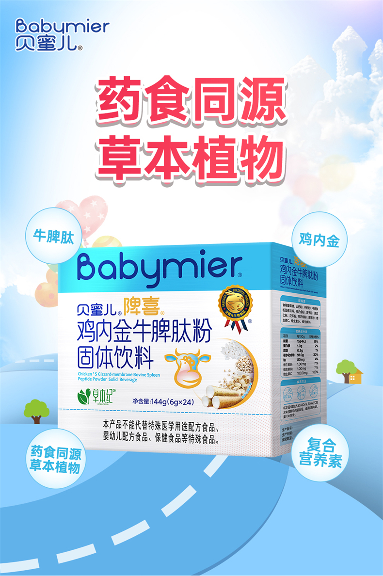 24年11月新货 贝蜜儿陴喜鸡内金牛脾肽粉少年儿童脾胃多种维生素冲剂24袋
