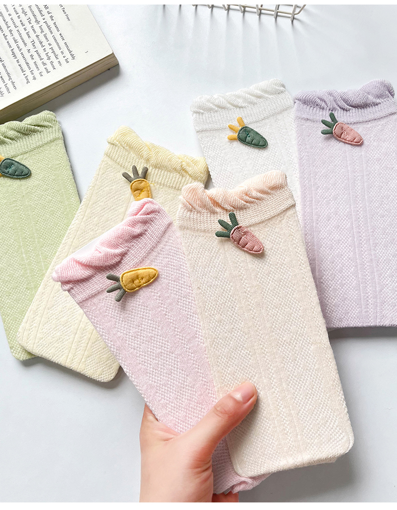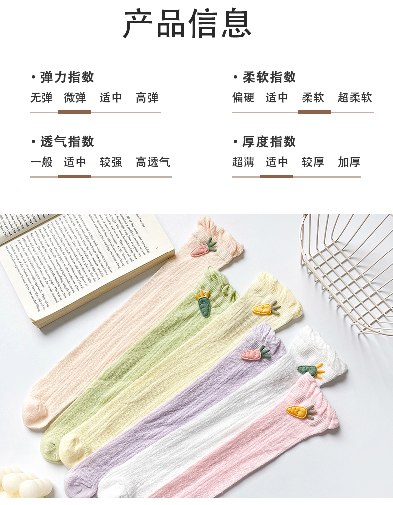 商品名称:【5双装】朝暮栖止儿童防蚊袜萝卜款亲子款夏季网眼棉袜子