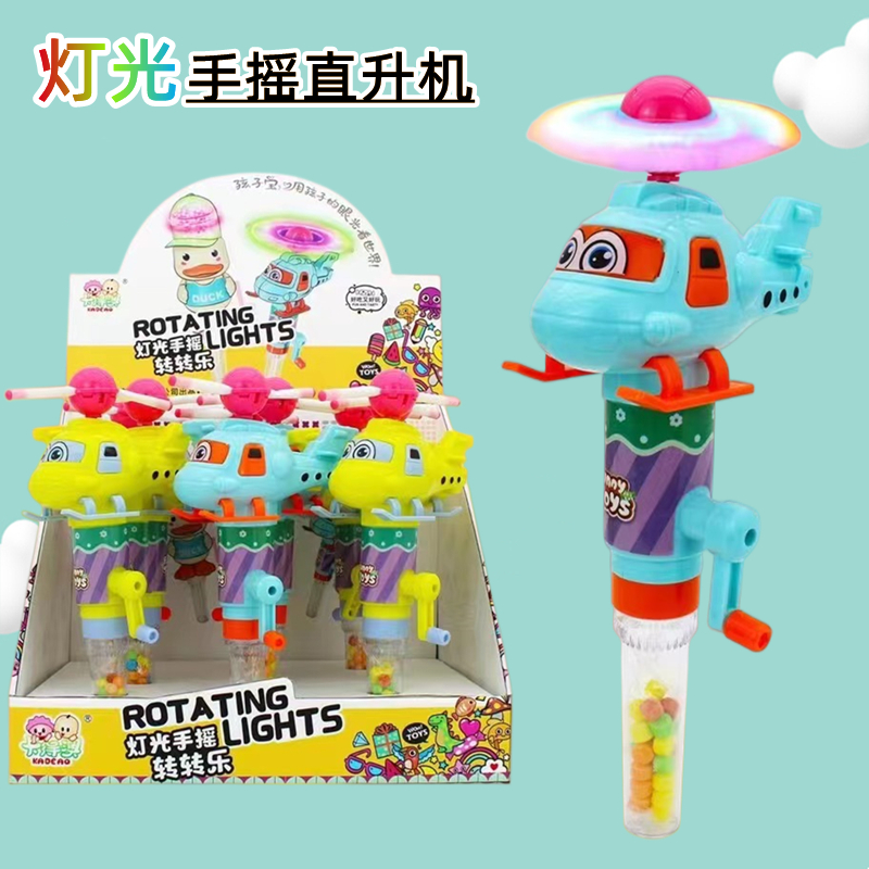糖果总动员灯光手摇直升机灯光手摇转转乐手摇旋风超市批发供货5g/个