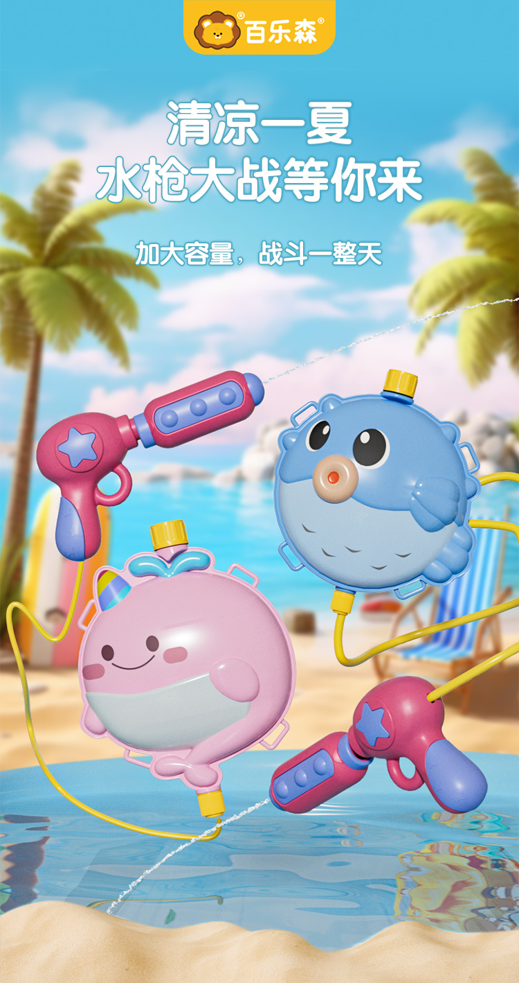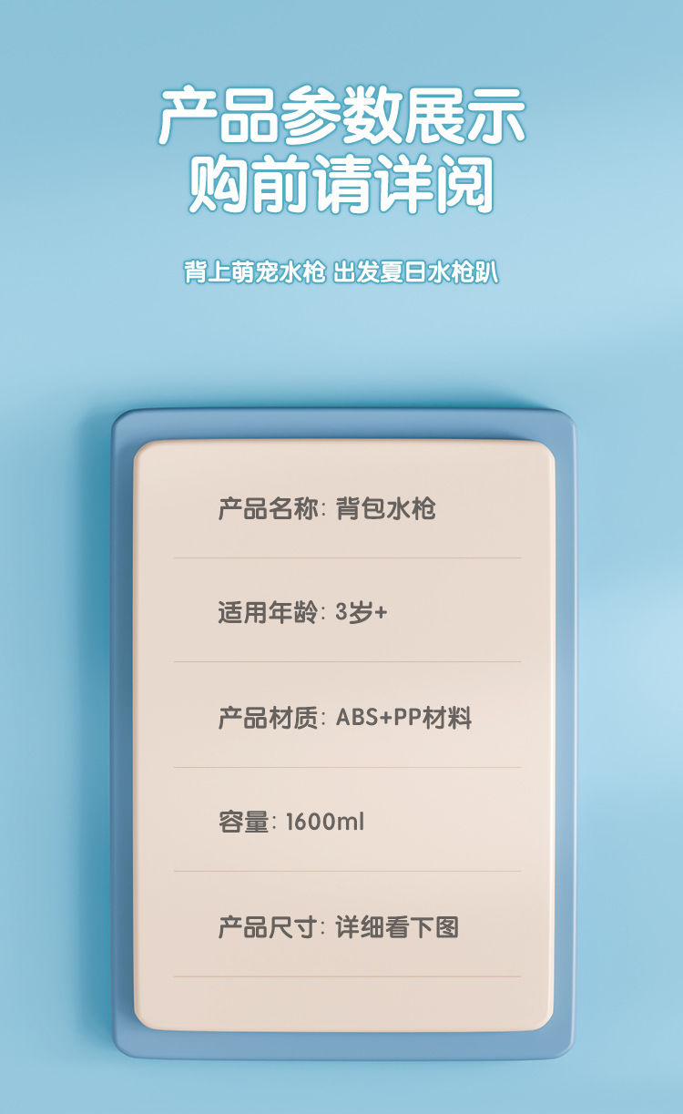 商品名称:百乐森儿童小背包水枪玩具夏季户外打水仗抽拉式戏水男女孩玩具 1600ml