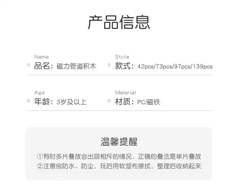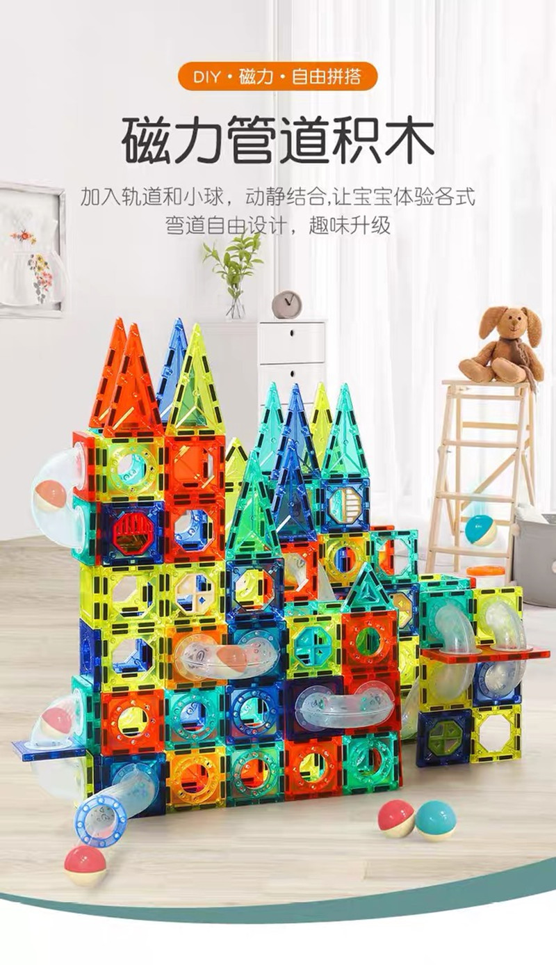 商品名称:磁力贴片管道积木儿童百变拼搭积木磁力片强早教益智启蒙玩具礼物
