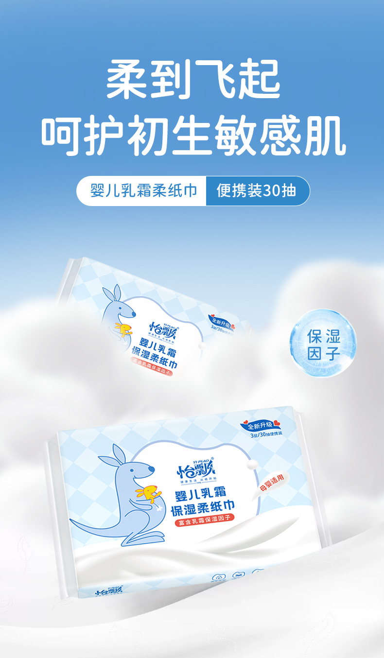 商品名称:【品牌直供 可心柔同款】怡飘婴儿乳霜柔纸巾宝宝专用保湿云柔巾30抽*15包