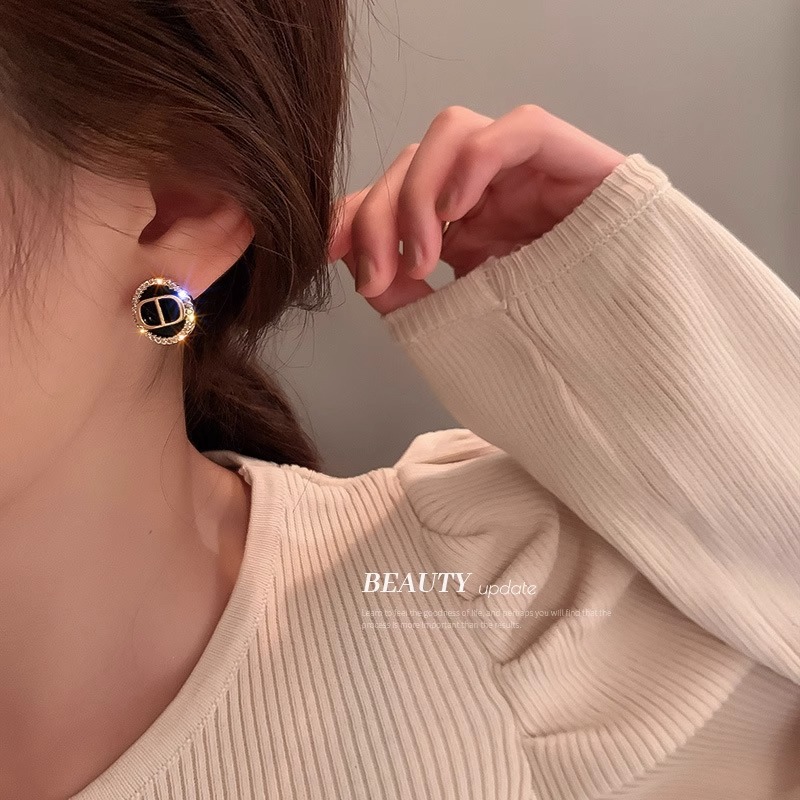 彤彤兔 S925银针镶钻字母韩版简约气质小众个性耳钉女耳环网红款