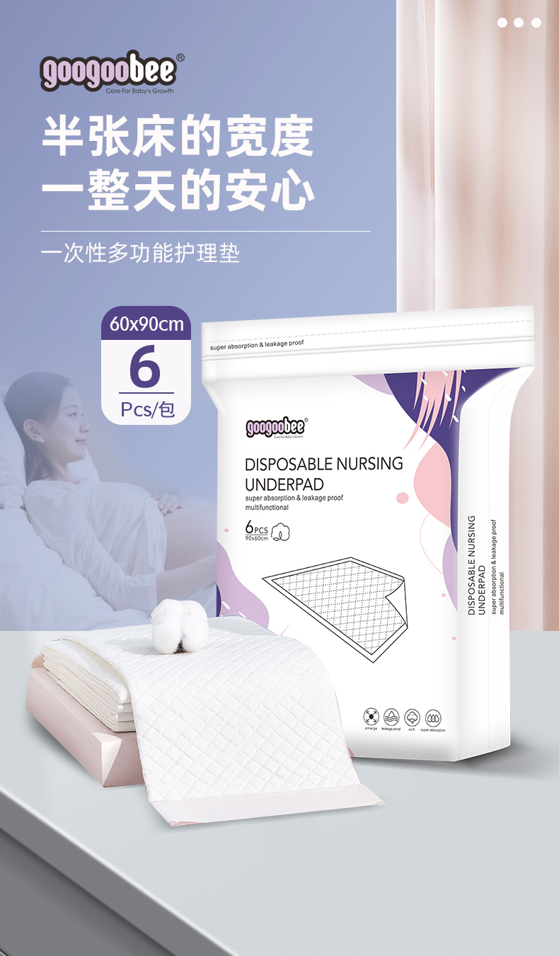 商品名称:英国googoobee产褥垫6片产妇垫老人专用成人护理垫隔尿垫一次性婴儿60x90大尺寸月经垫床垫