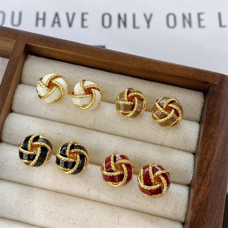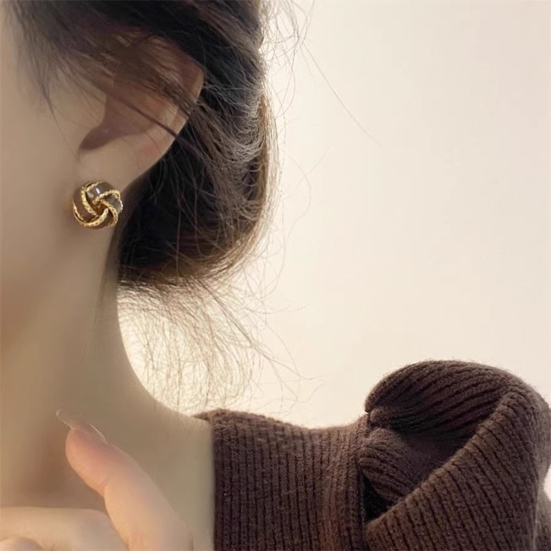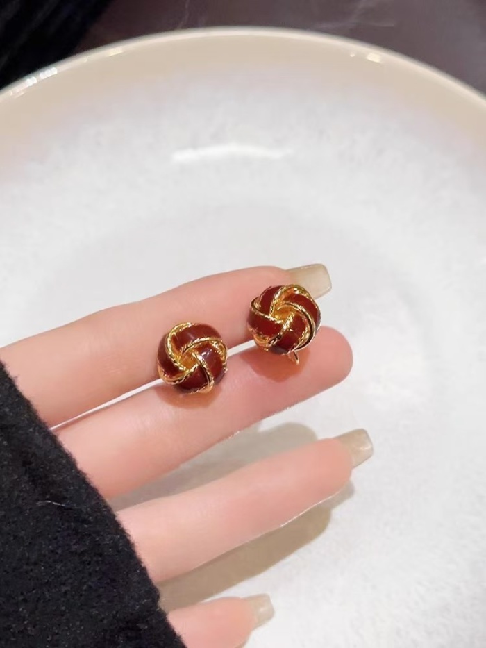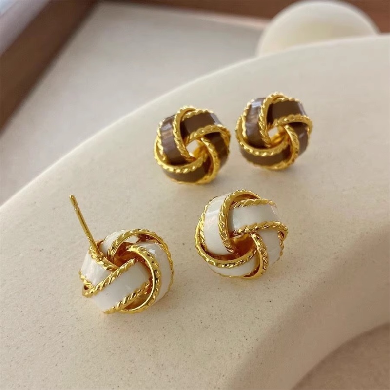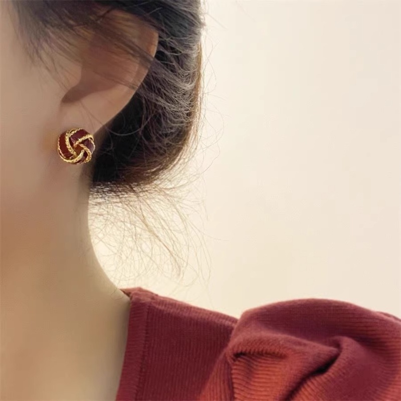 彤彤兔 复古气质美拉德色麻花耳钉女秋冬轻奢高级感耳环小众设计耳饰