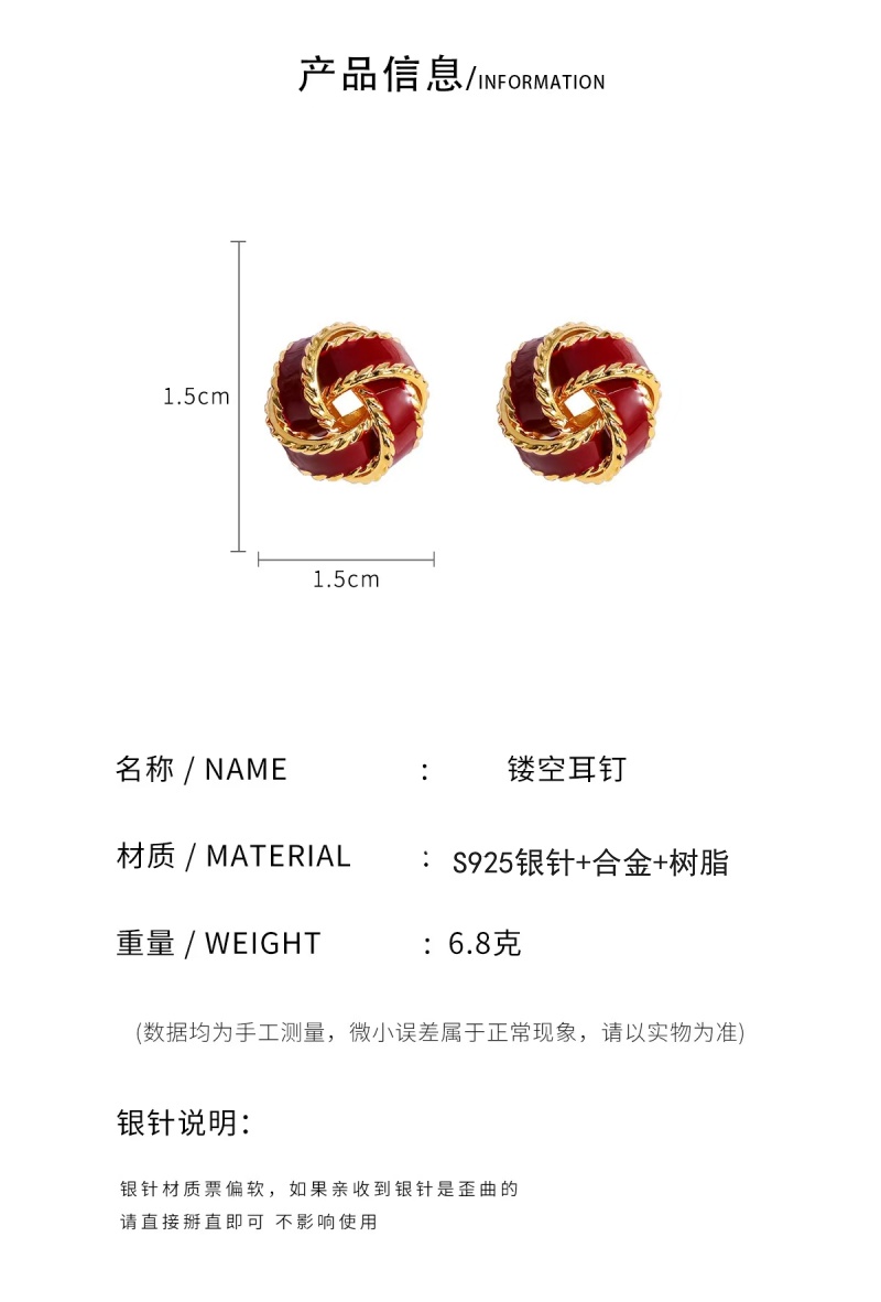 商品名称:彤彤兔 复古气质美拉德色麻花耳钉女秋冬轻奢高级感耳环小众设计耳饰