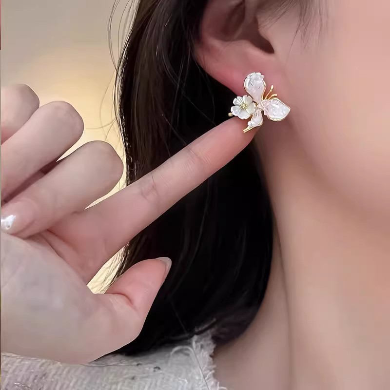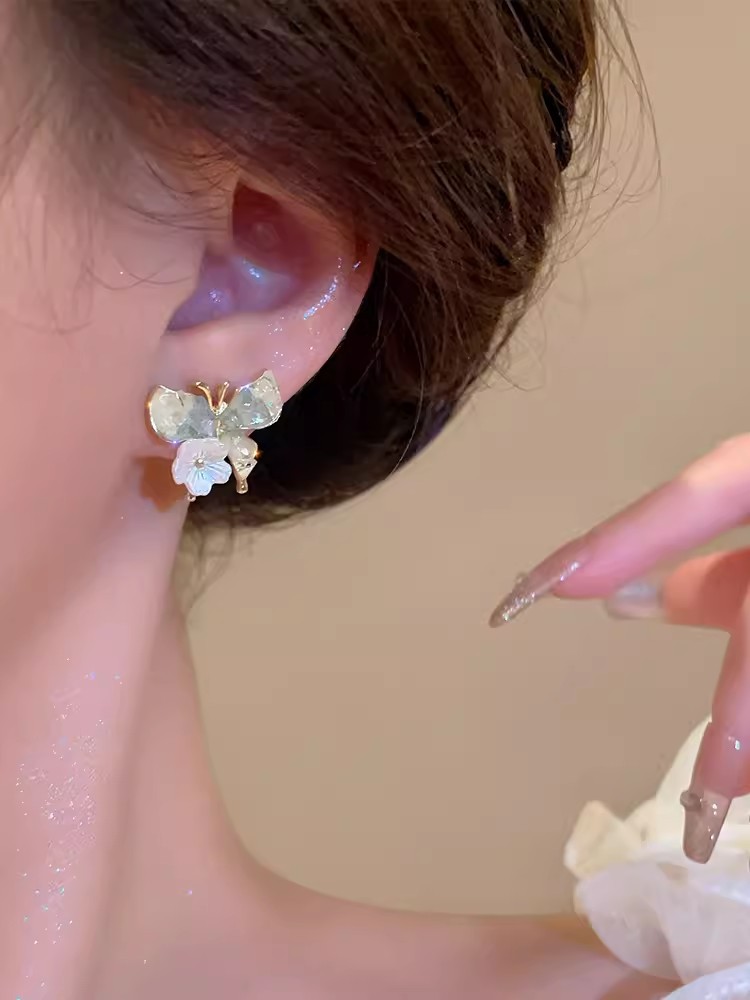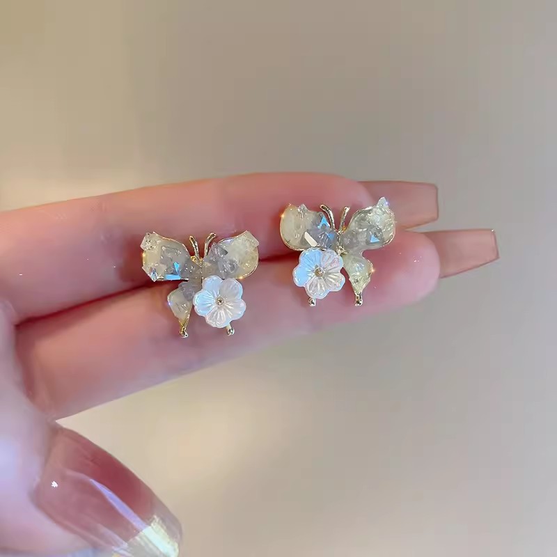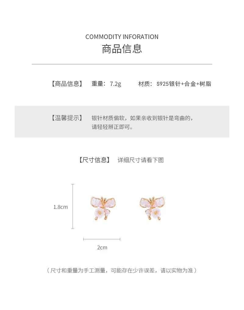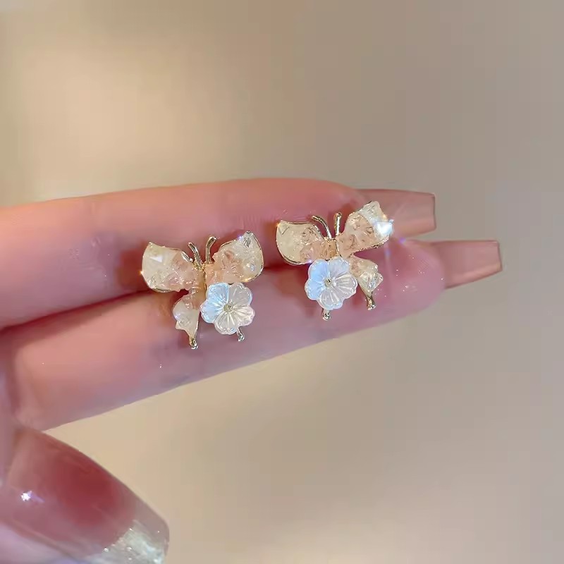 商品名称:彤彤兔 S925银针粉色水晶蝴蝶花朵耳钉耳饰高级感精致百搭耳环