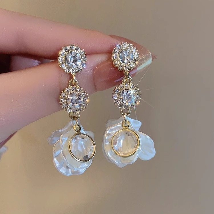 商品名称:彤彤兔 S925银针闪钻贝壳花朵流苏耳环女爆款小众设计高级感耳饰