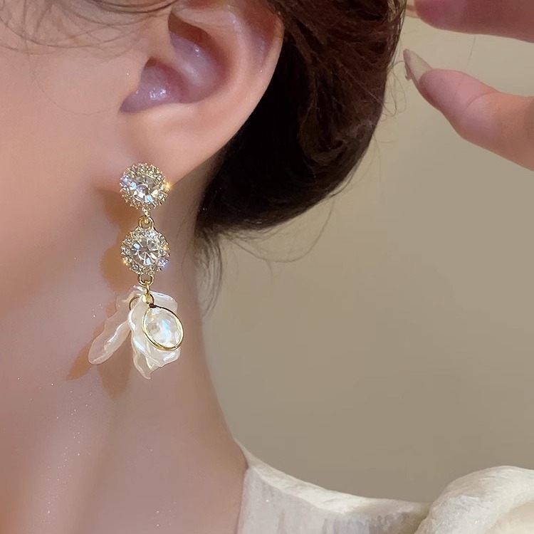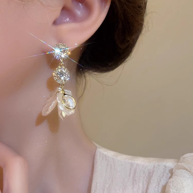 彤彤兔 S925银针闪钻贝壳花朵流苏耳环女爆款小众设计高级感耳饰