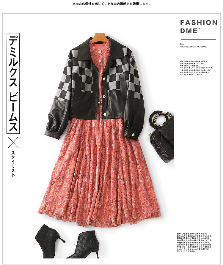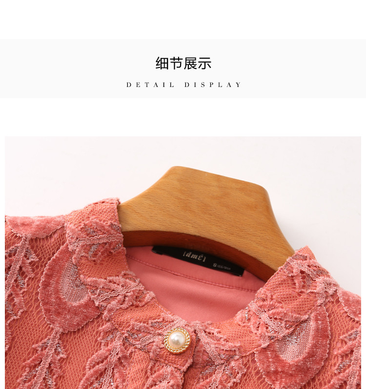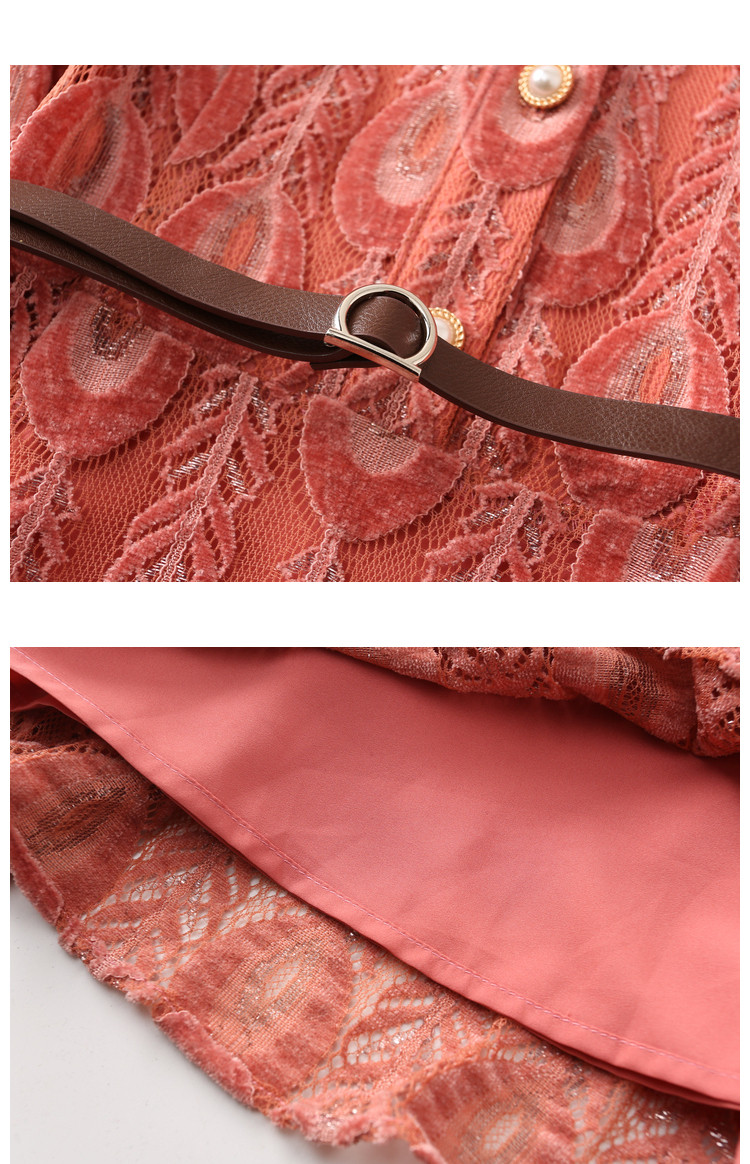 商品名称:【羽毛蕾丝】春秋小立领长袖a摆连衣裙女 757313
