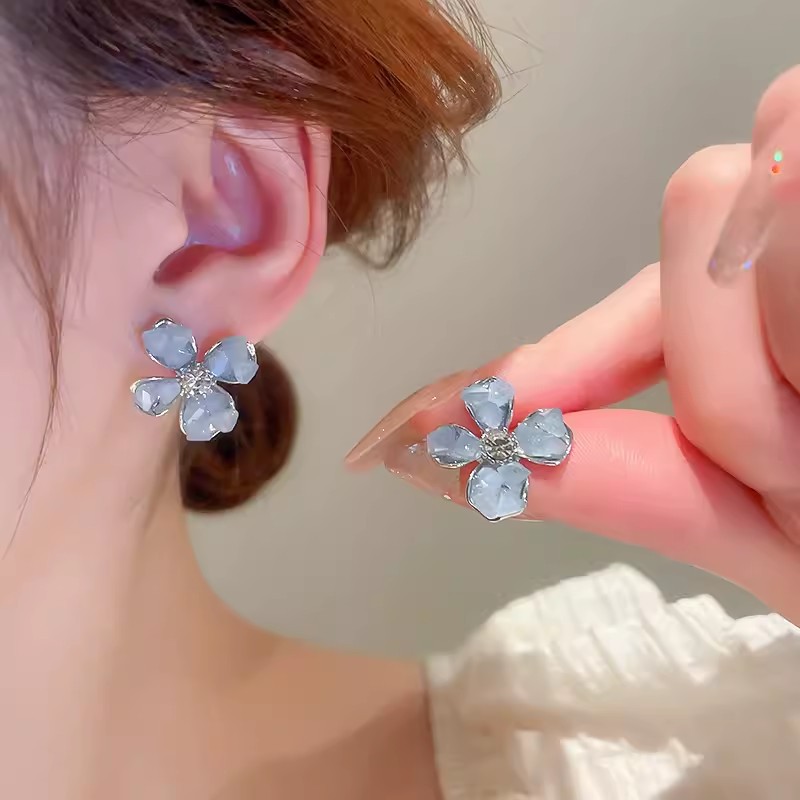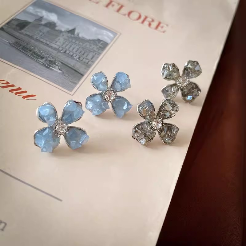 彤彤兔 S925银针水晶花朵耳环女爆款轻奢小众高级感耳钉森系耳饰