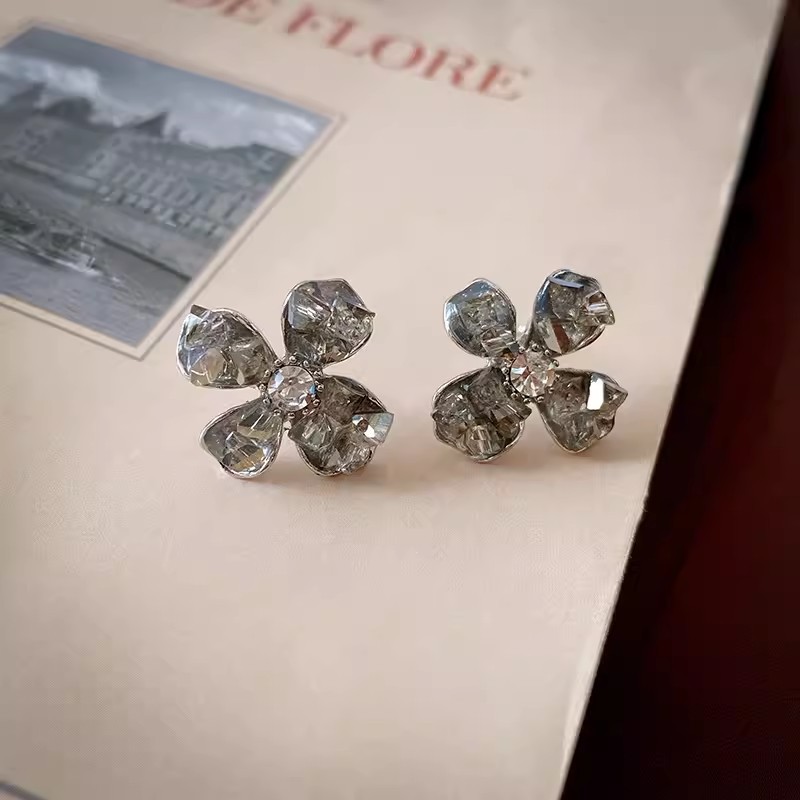 商品名称:彤彤兔 S925银针水晶花朵耳环女爆款轻奢小众高级感耳钉森系耳饰