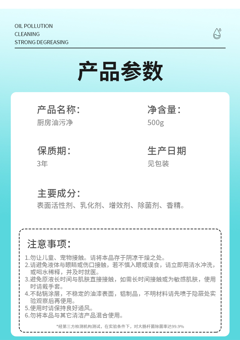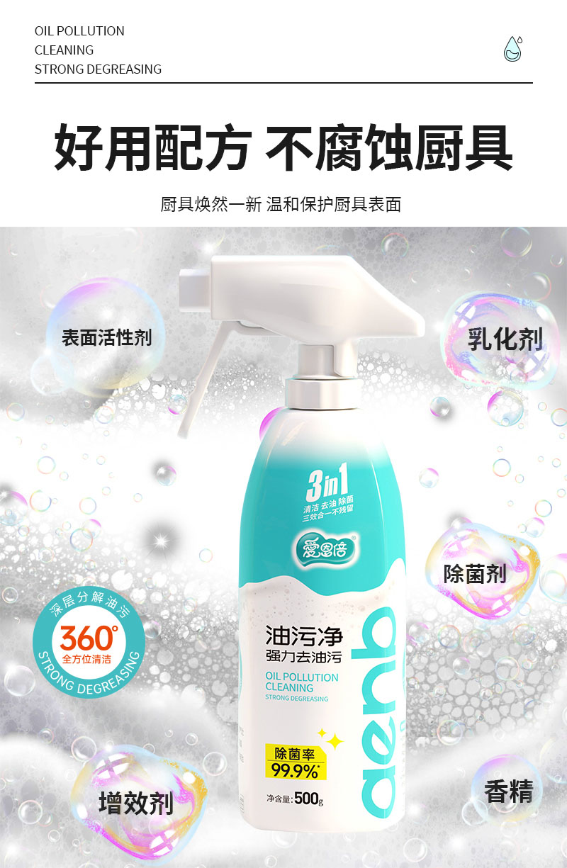 商品名称:爱恩倍厨房油污净清洁剂家用油烟机清洁强力去污油烟净500ml