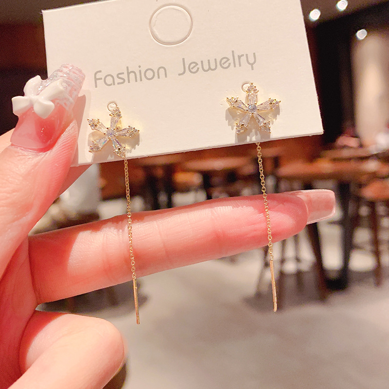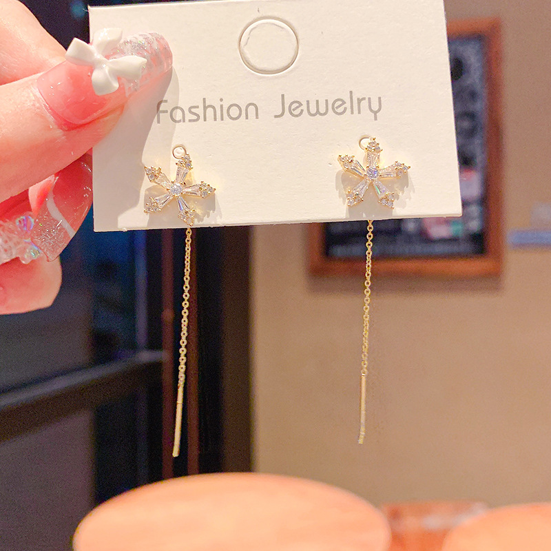 商品名称:彤彤兔 S925银针镶钻花朵流苏耳线气质高级感轻奢简约精致养耳洞耳饰