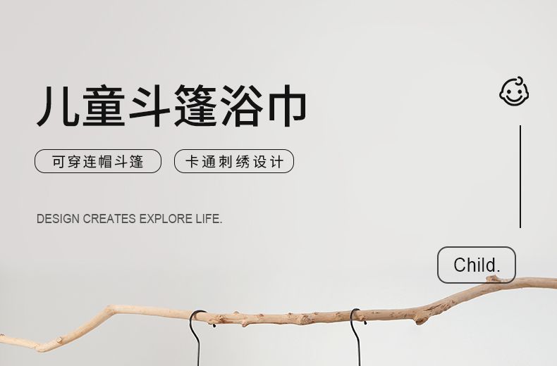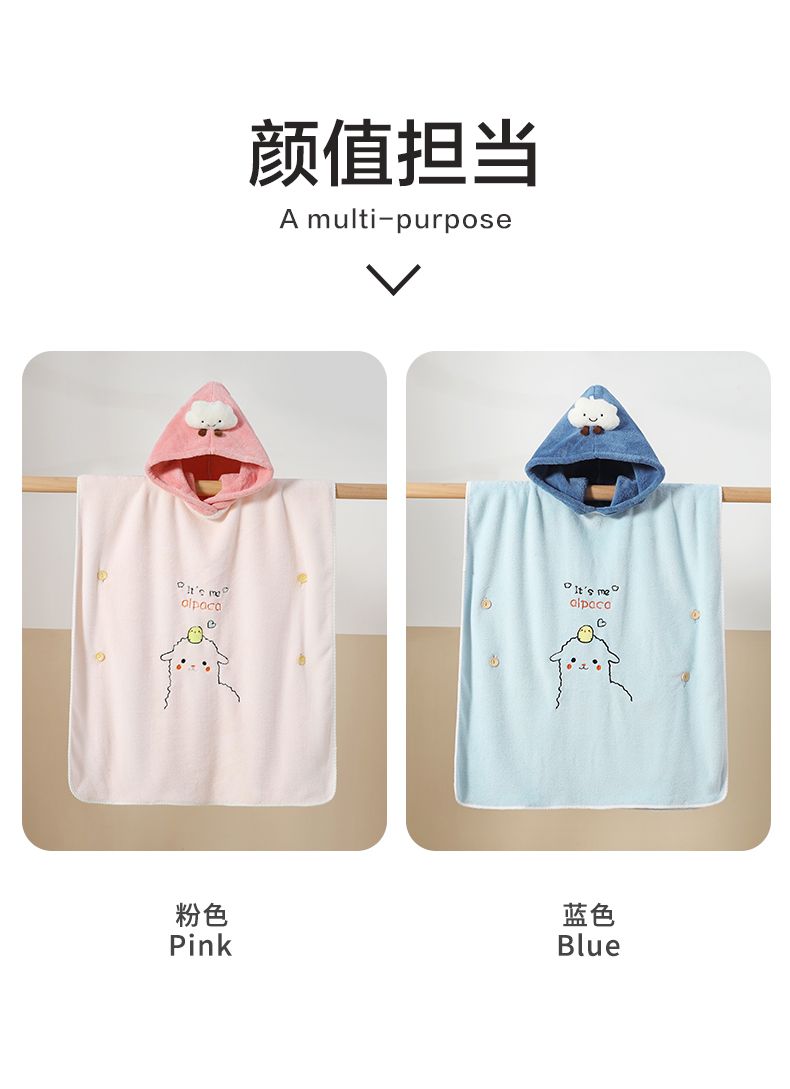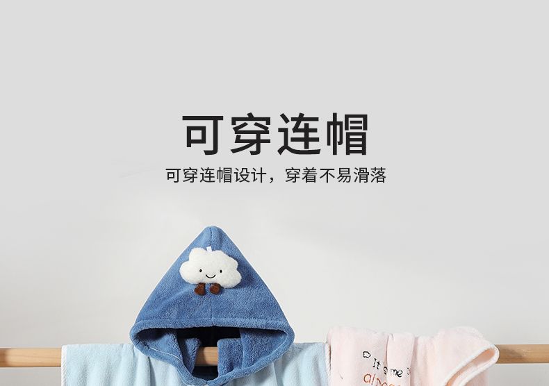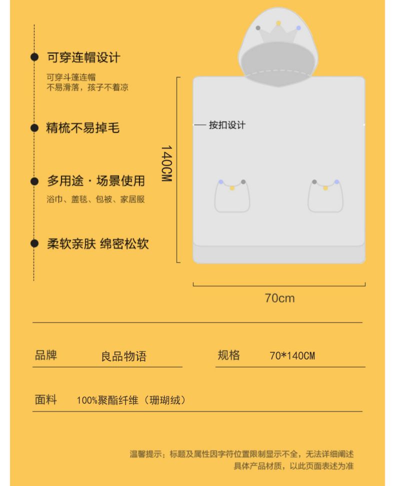 商品名称:良品物语儿童浴巾斗篷宝宝连帽浴袍珊瑚绒吸水中大童专用女游泳洗澡可穿式