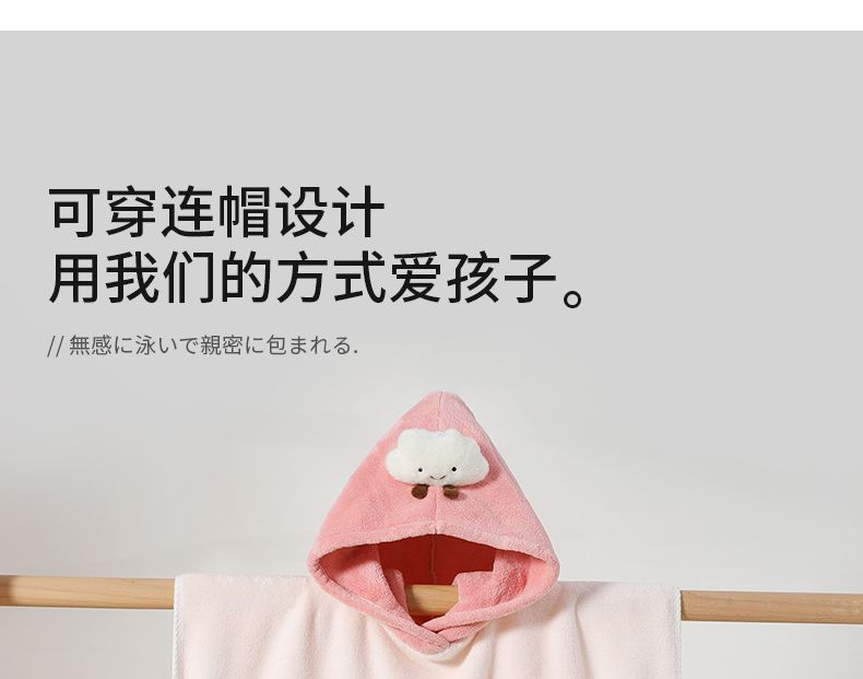 良品物语儿童浴巾斗篷宝宝连帽浴袍珊瑚绒吸水中大童专用女游泳洗澡可穿式