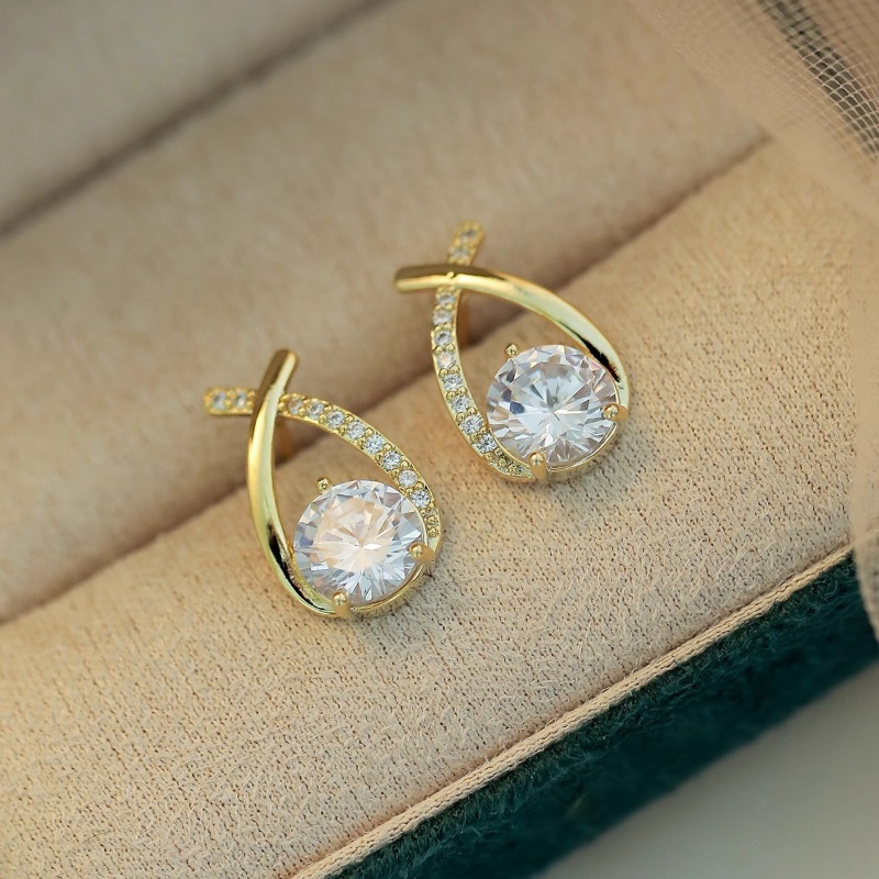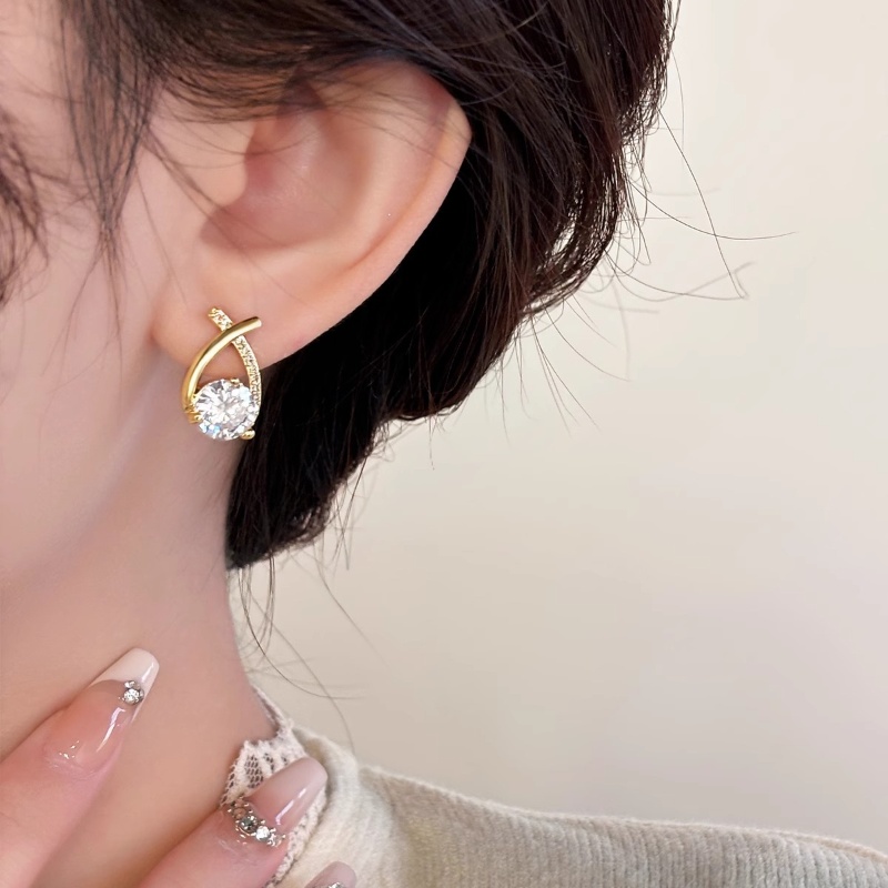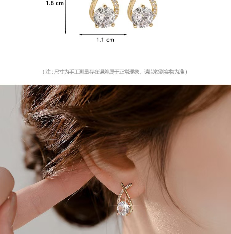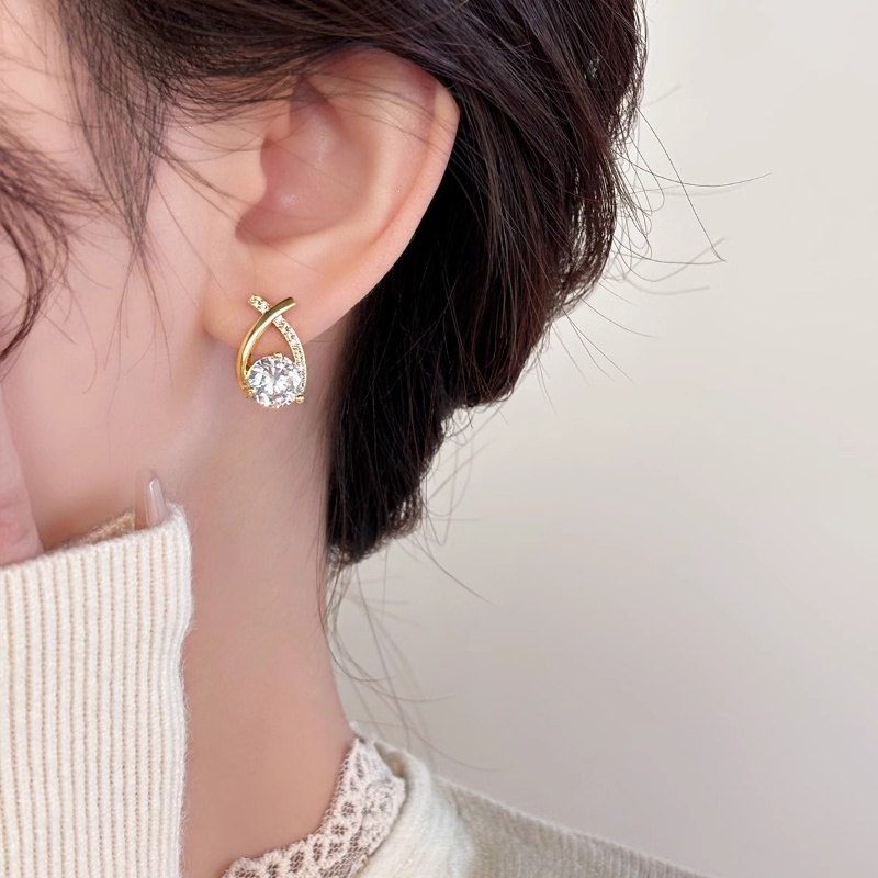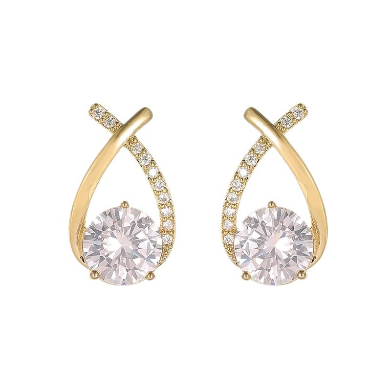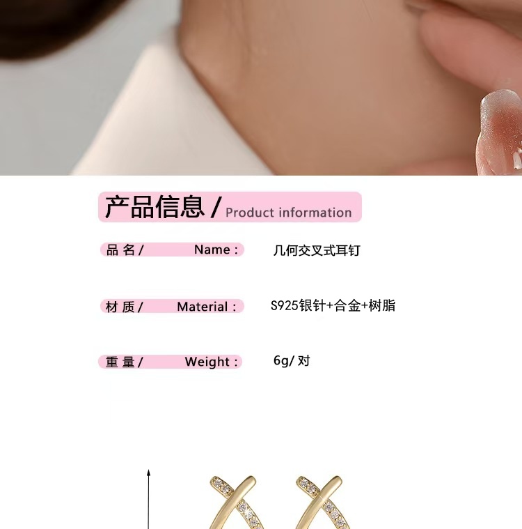 商品名称:彤彤兔 S925银针简约交叉金色水钻耳钉女小众设计耳钉耳饰