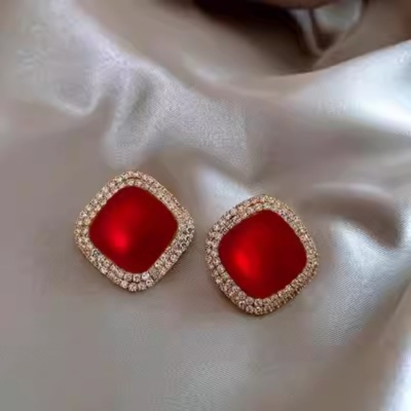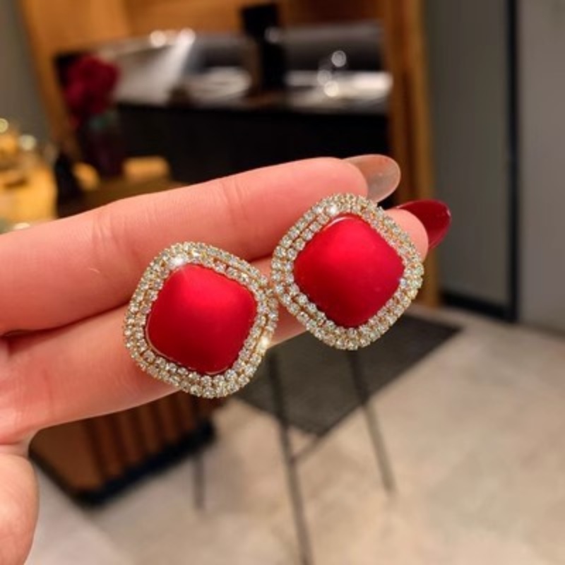 彤彤兔 S925银针方形双层水钻镶边珍珠耳钉女小众设计感耳潮