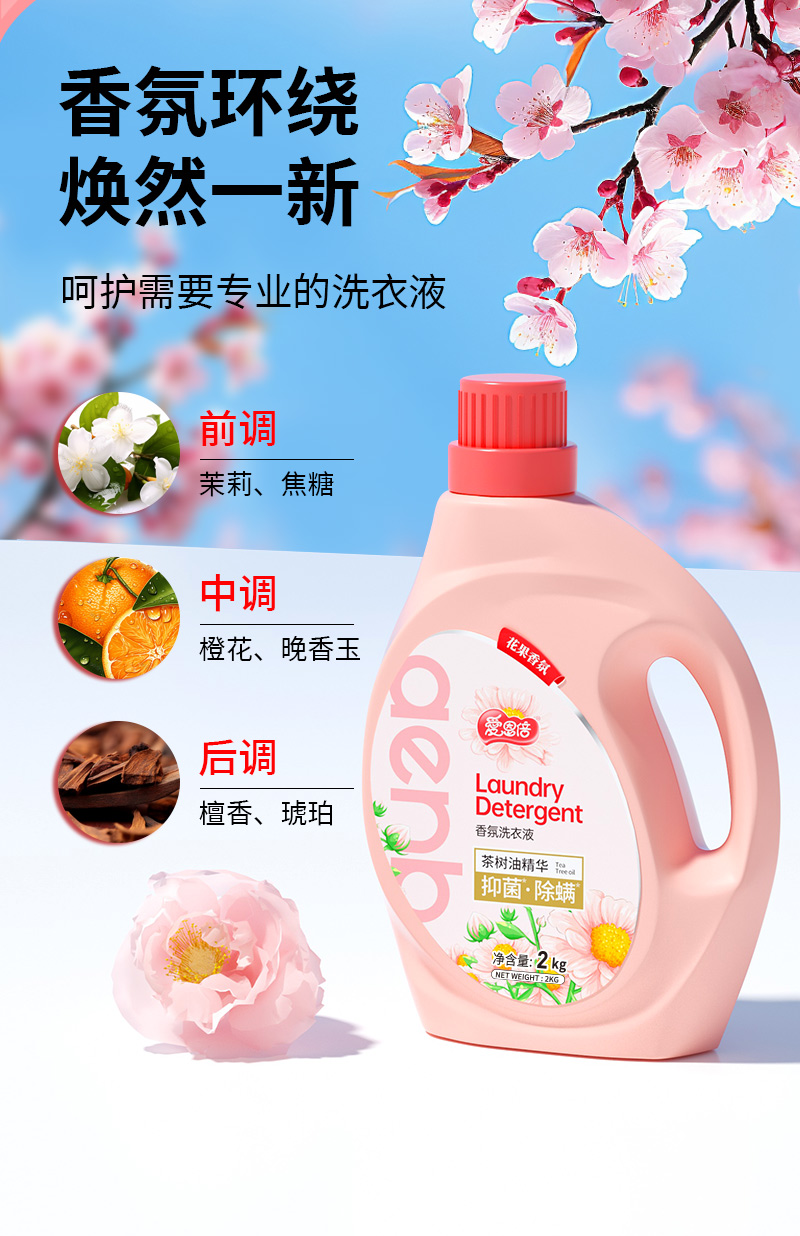 爱恩倍除菌除螨花果香氛洗衣液2KG桶装