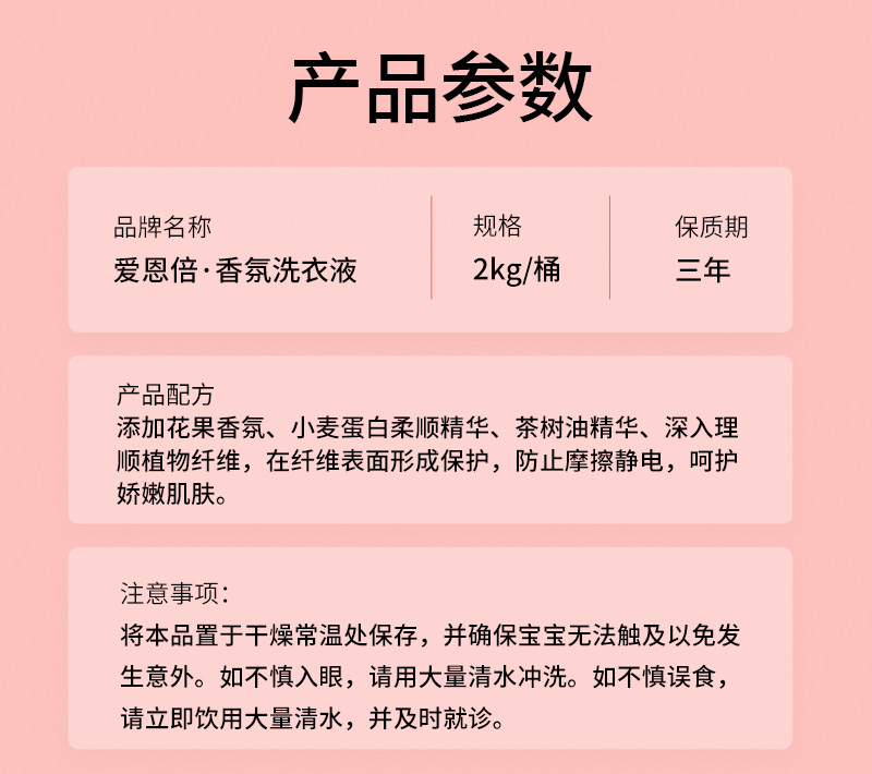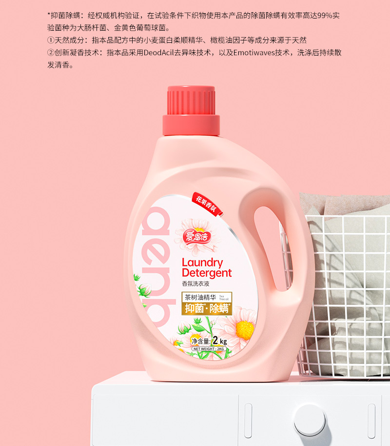 商品名称:爱恩倍除菌除螨花果香氛洗衣液2KG桶装