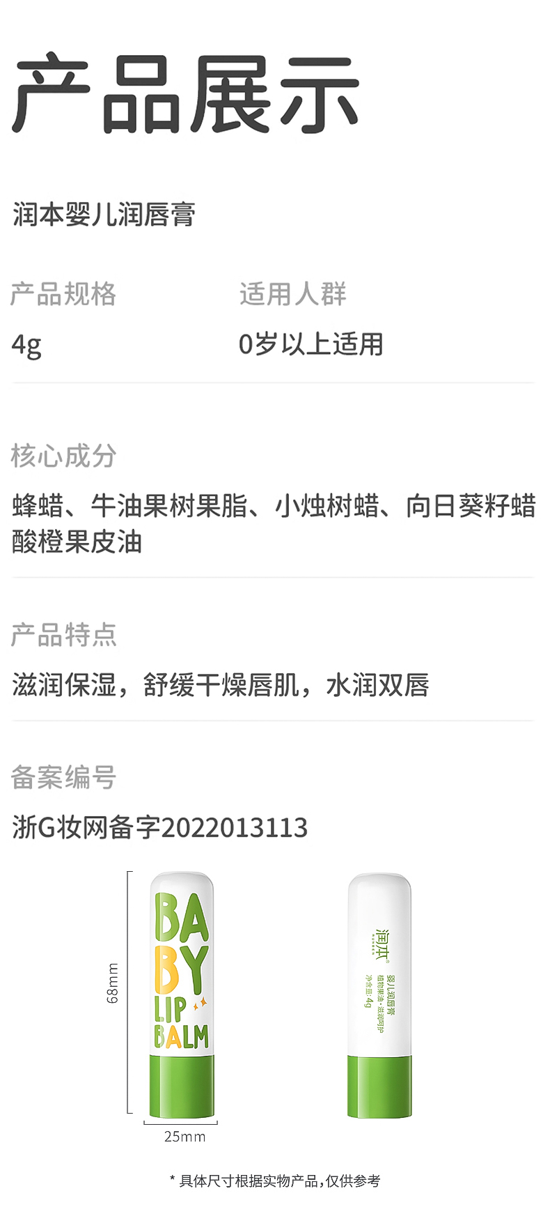 商品名称:【一件起批】润本婴幼儿润唇膏儿童宝宝保湿滋润护唇膏婴儿防干裂