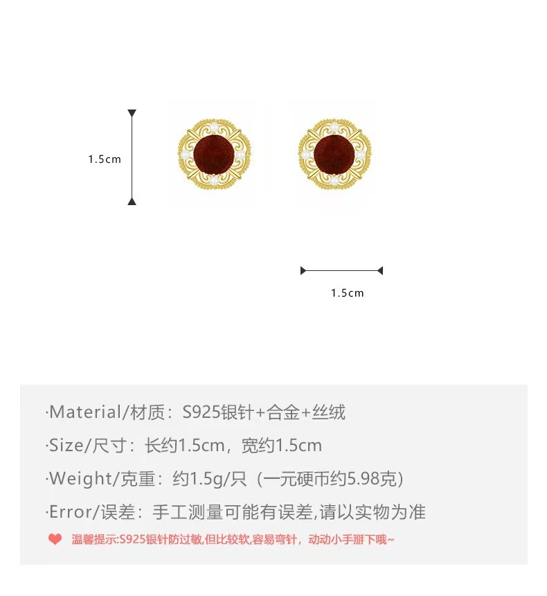 商品名称:彤彤兔 S925银针复古宫廷风耳钉简约镂空珍珠耳环款耳饰女
