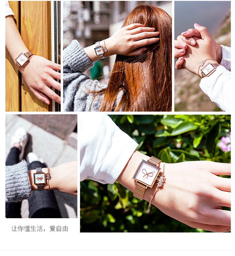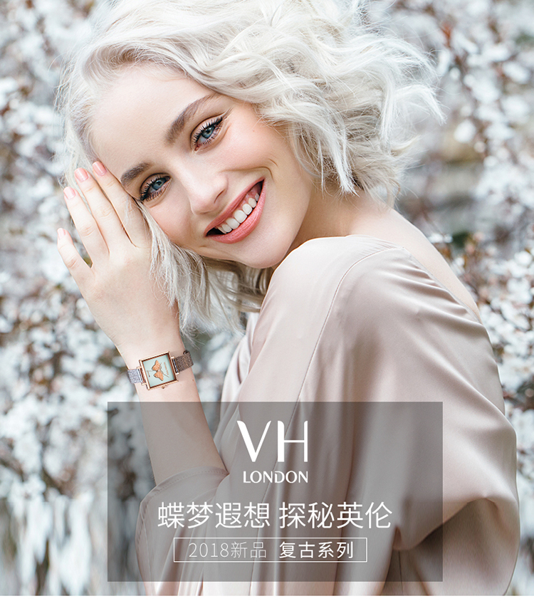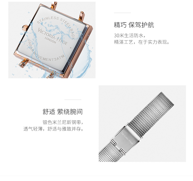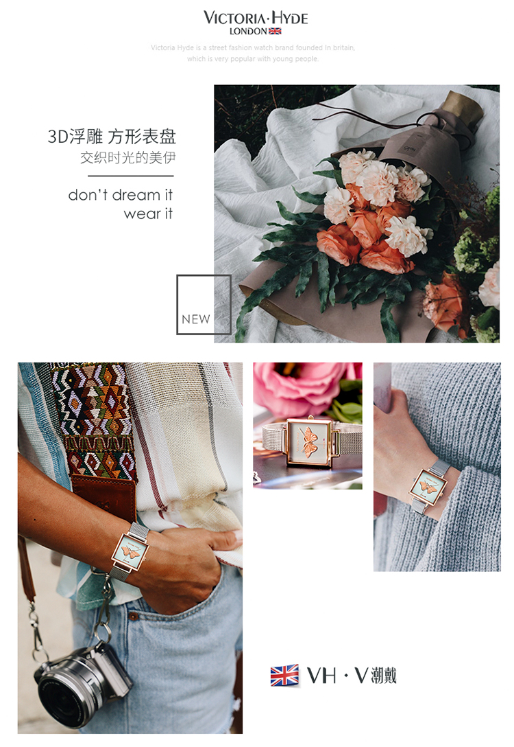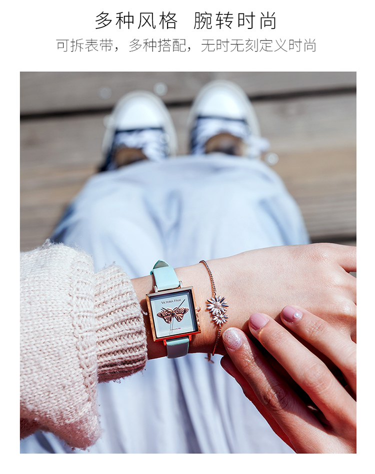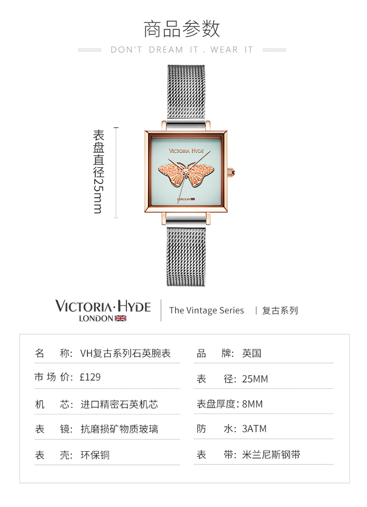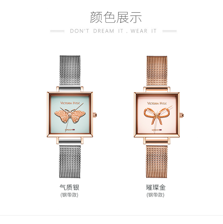 商品名称:Victoria.Hyde/维多利亚海德 复古方表系列女士石英腕表3D浮雕蝴蝶结钢带款手表25mm