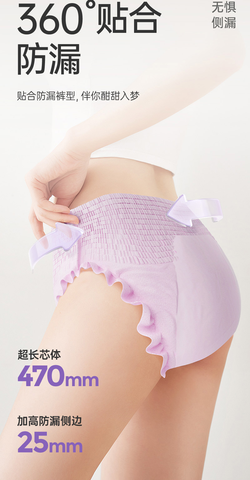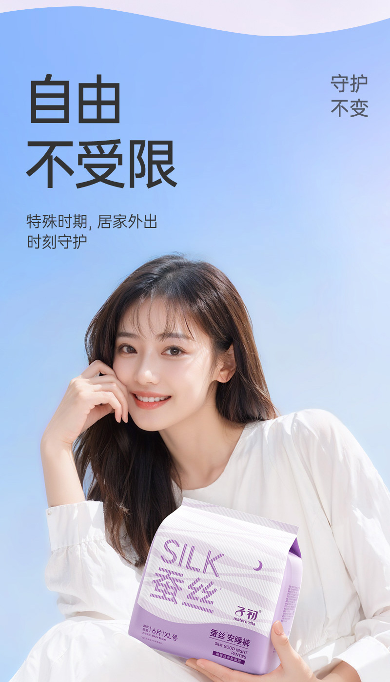 【品牌直供】子初蚕丝安睡裤孕产妇卫生巾夜用姨妈巾女经期用防漏成人安心裤卫生裤