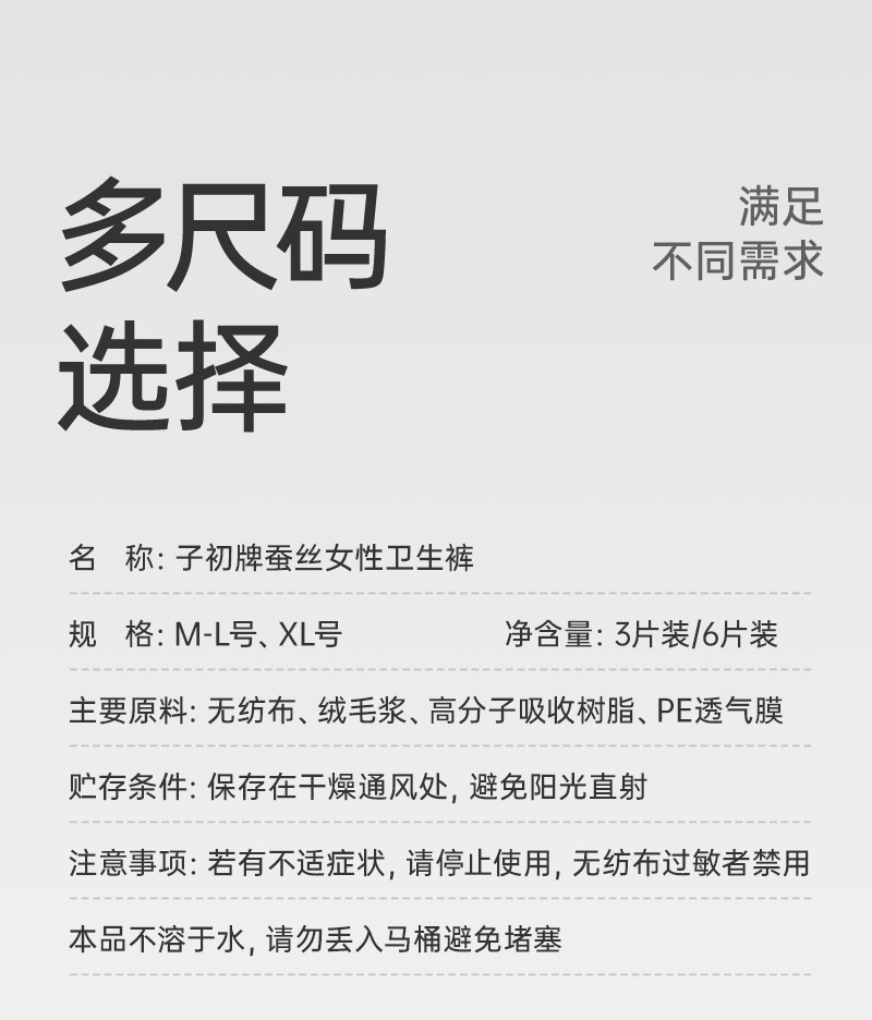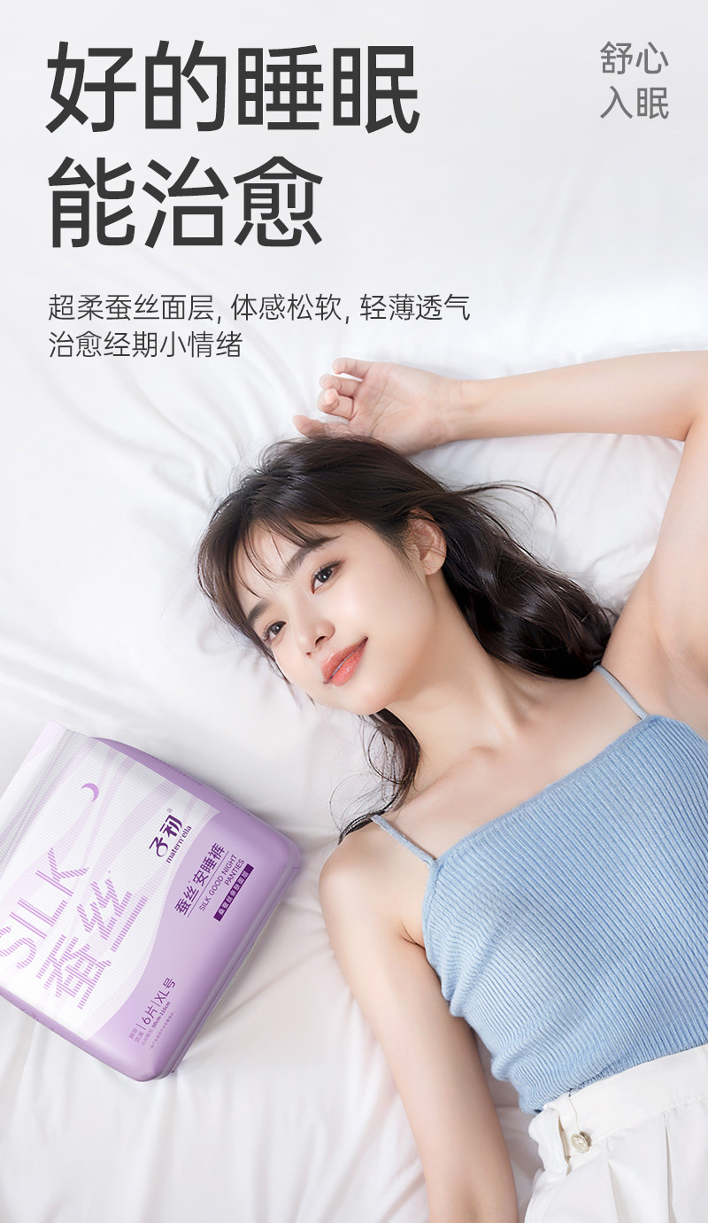 商品名称:【品牌直供】子初蚕丝安睡裤孕产妇卫生巾夜用姨妈巾女经期用防漏成人安心裤卫生裤