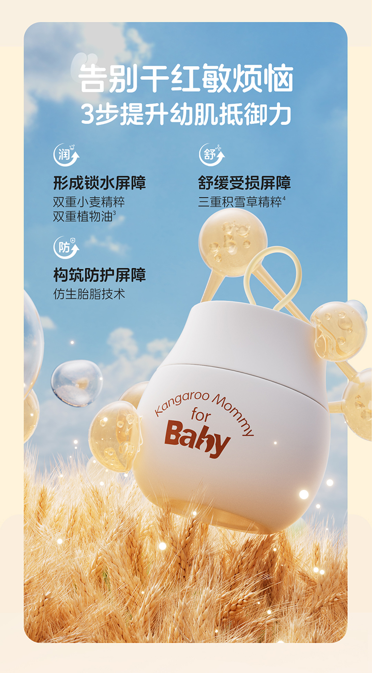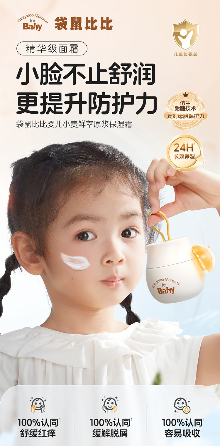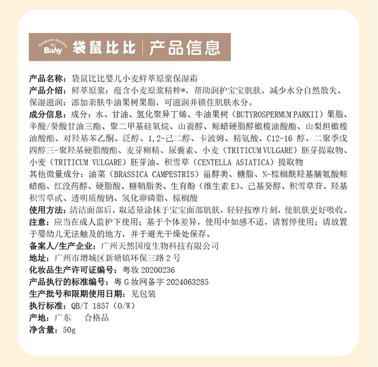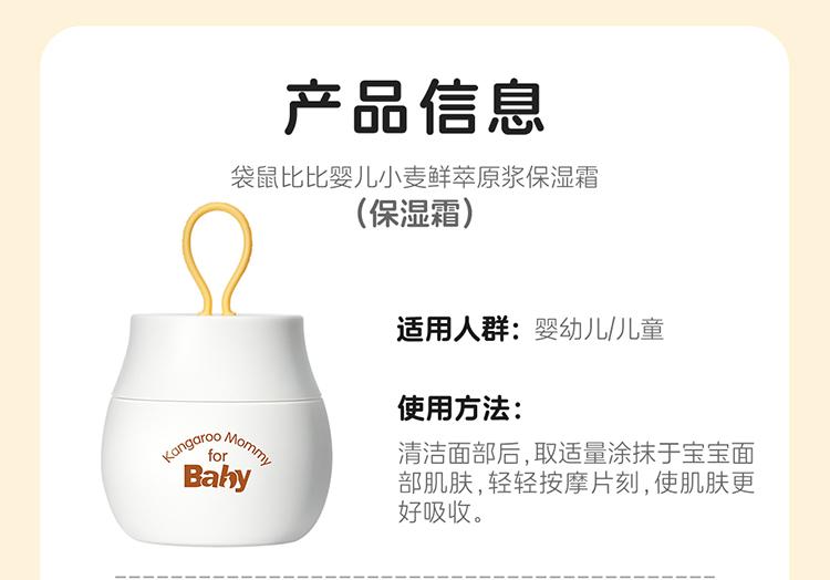 商品名称:【品牌直供】袋鼠比比小麦儿童面霜婴儿润肤霜滋润保湿霜润肤乳0-3岁小麦原浆保湿霜50g