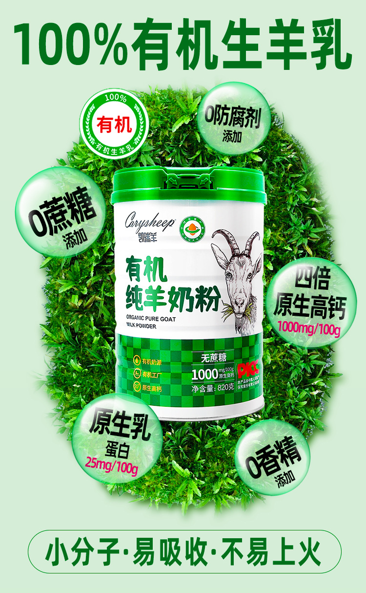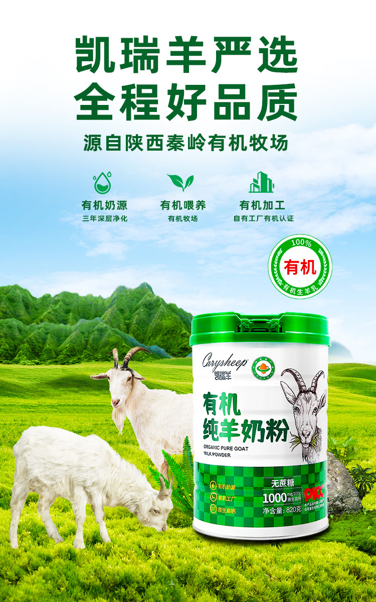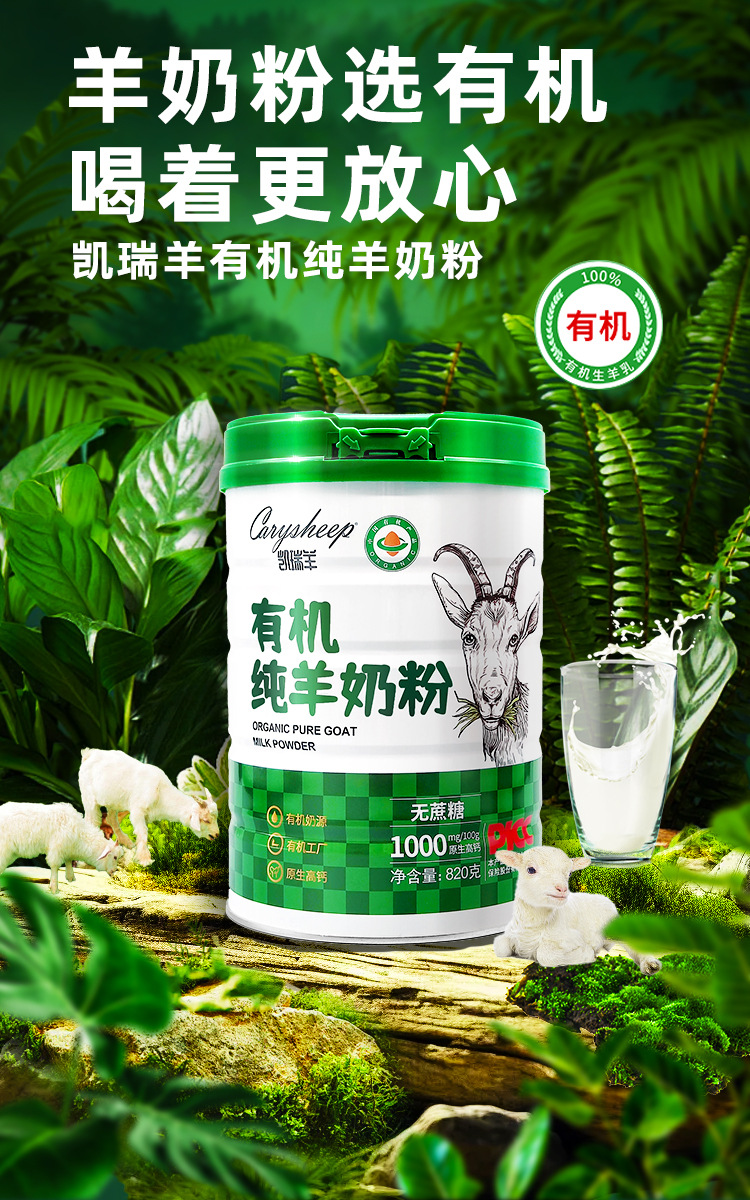 凯瑞羊有机纯羊奶粉学生成人中老年儿童无蔗糖高钙成人羊奶粉820g/罐装增强免疫力