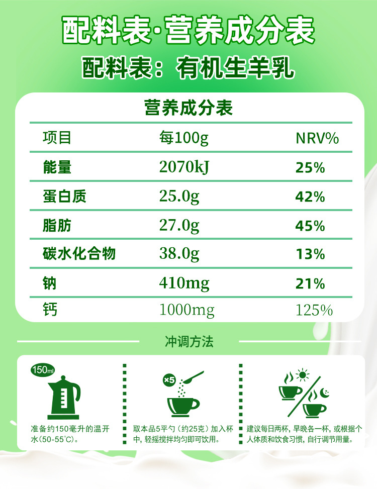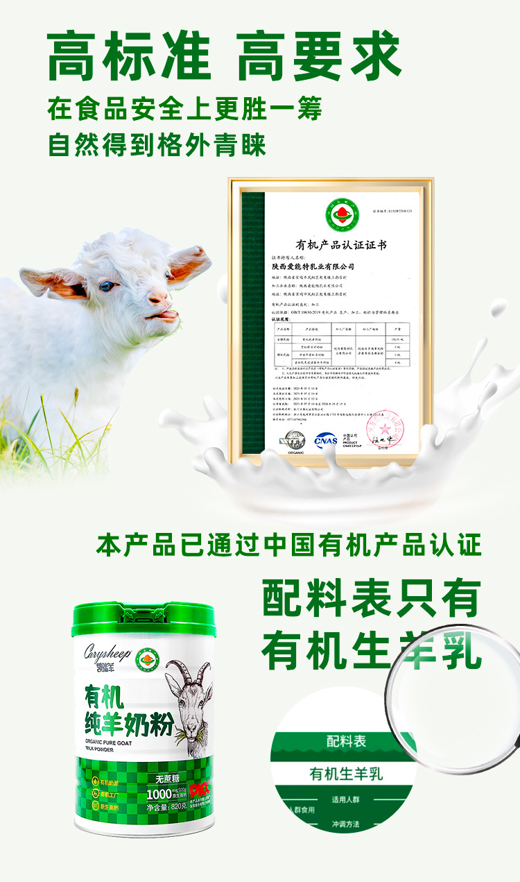 商品名称:凯瑞羊有机纯羊奶粉学生成人中老年儿童无蔗糖高钙成人羊奶粉820g/罐装增强免疫力