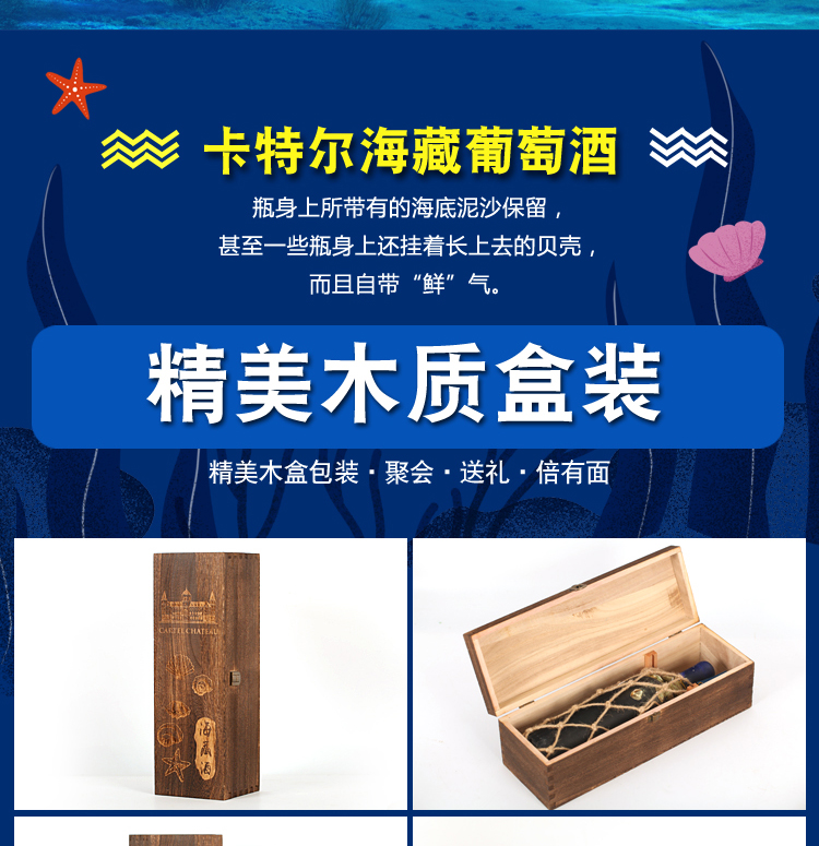 卡特尔海藏红酒干红葡萄酒750ml*1支带精美木箱礼盒