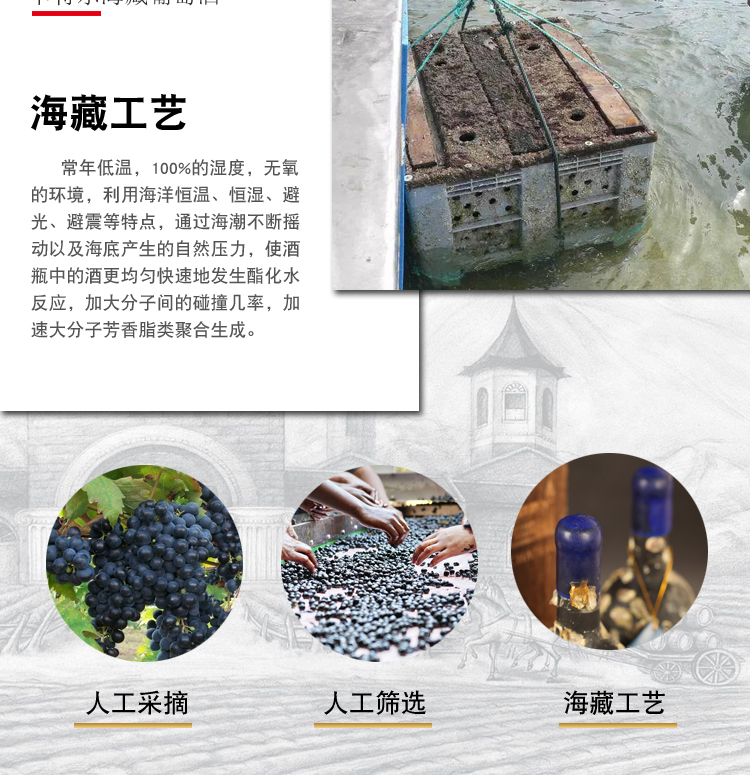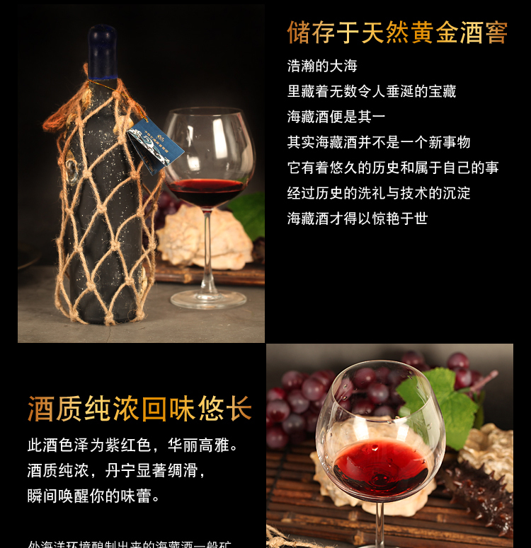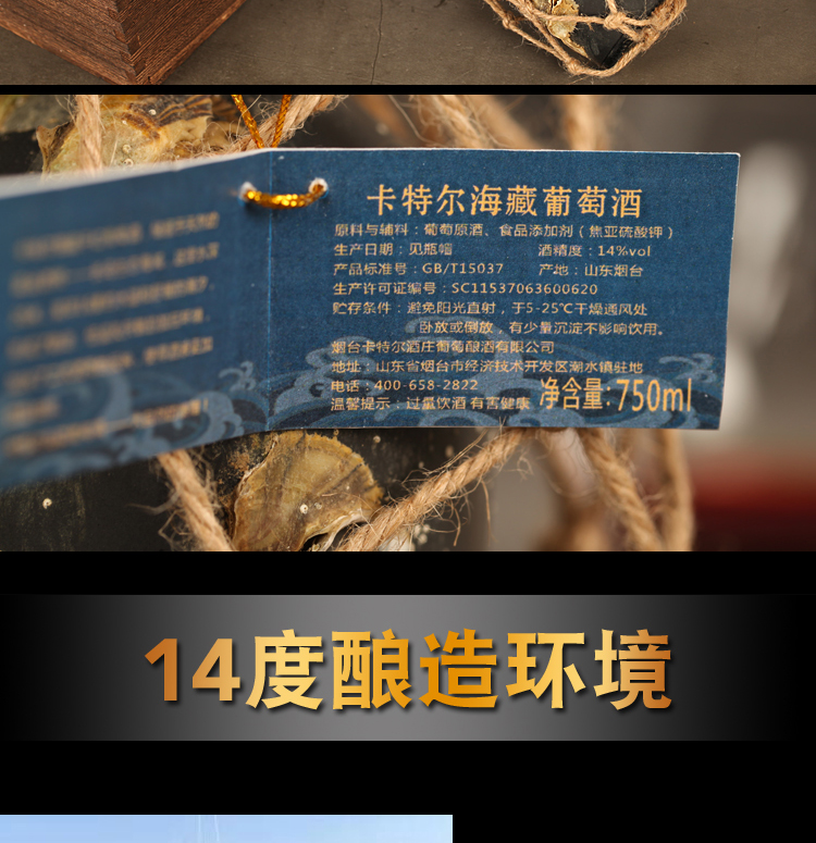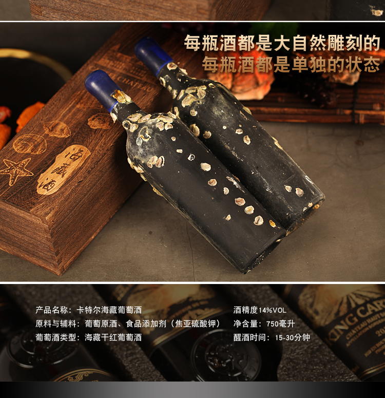 商品名称:卡特尔海藏红酒干红葡萄酒750ml*1支带精美木箱礼盒