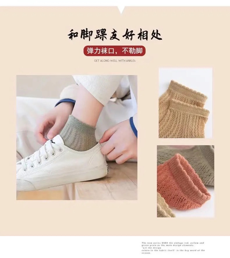 商品名称:【20双装更优惠】朝暮栖止女士镂空隐形船袜糖果色袜子