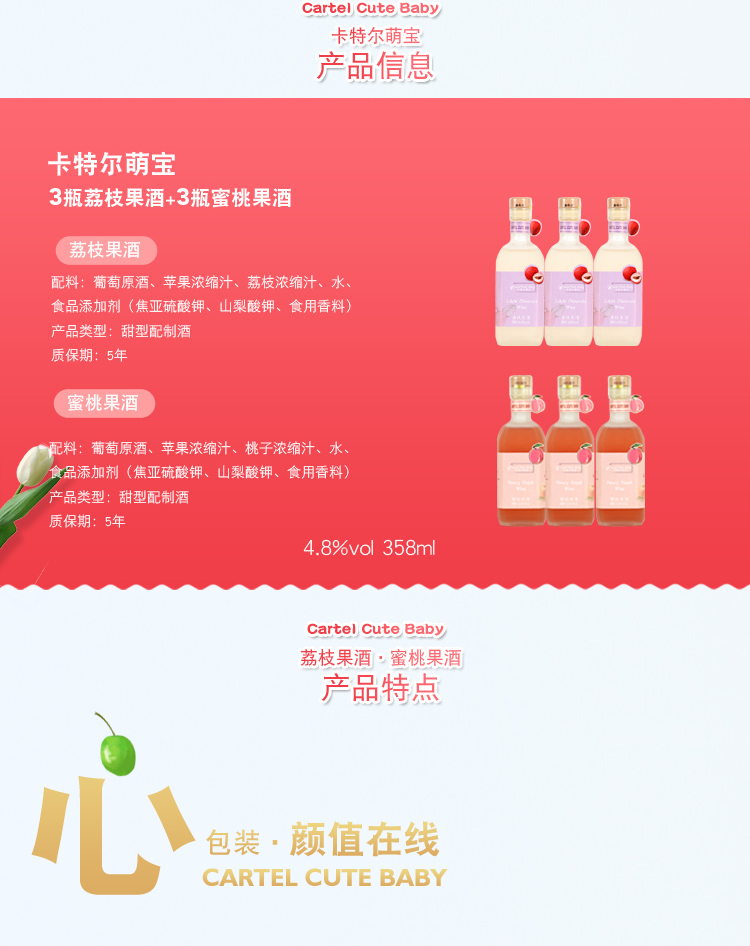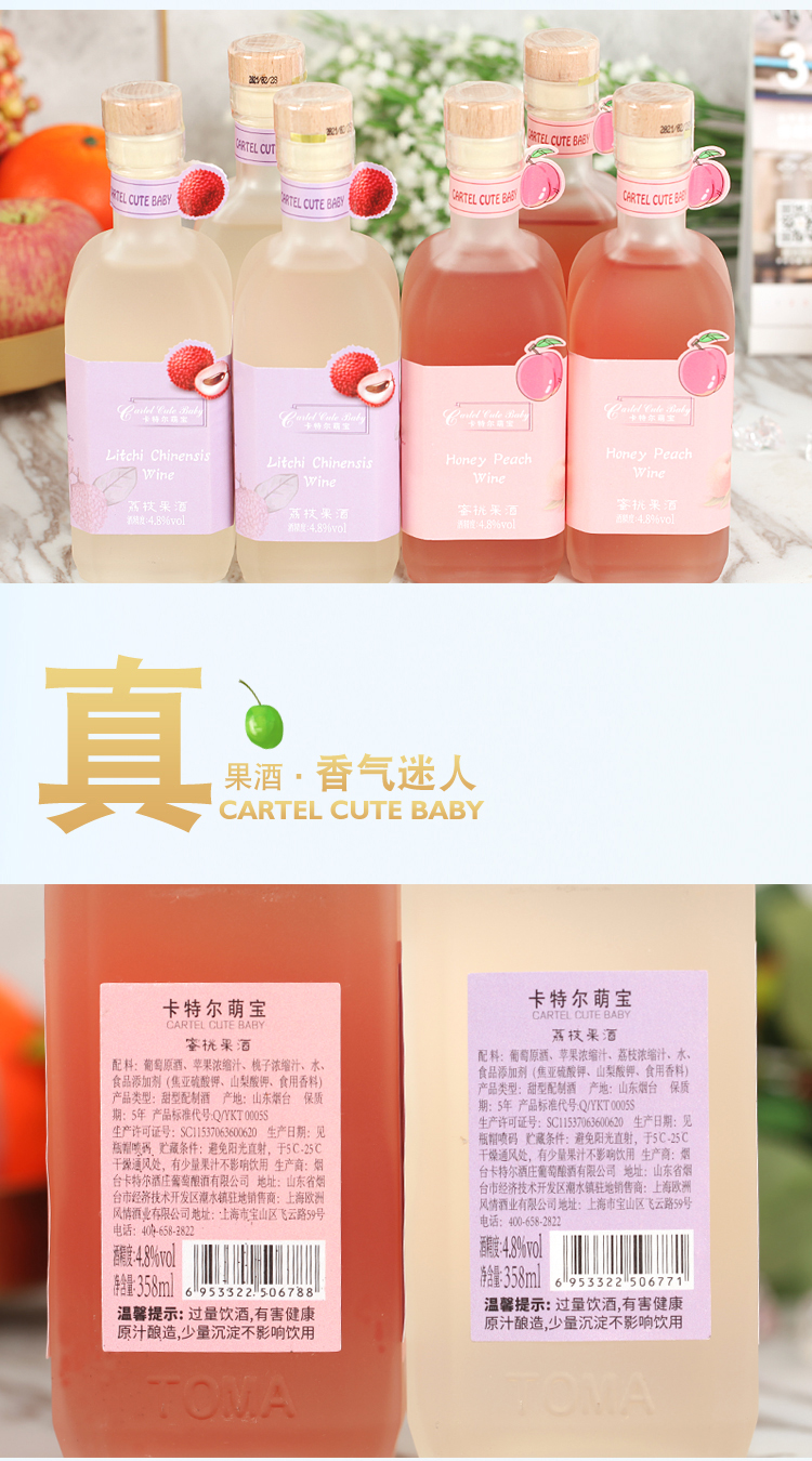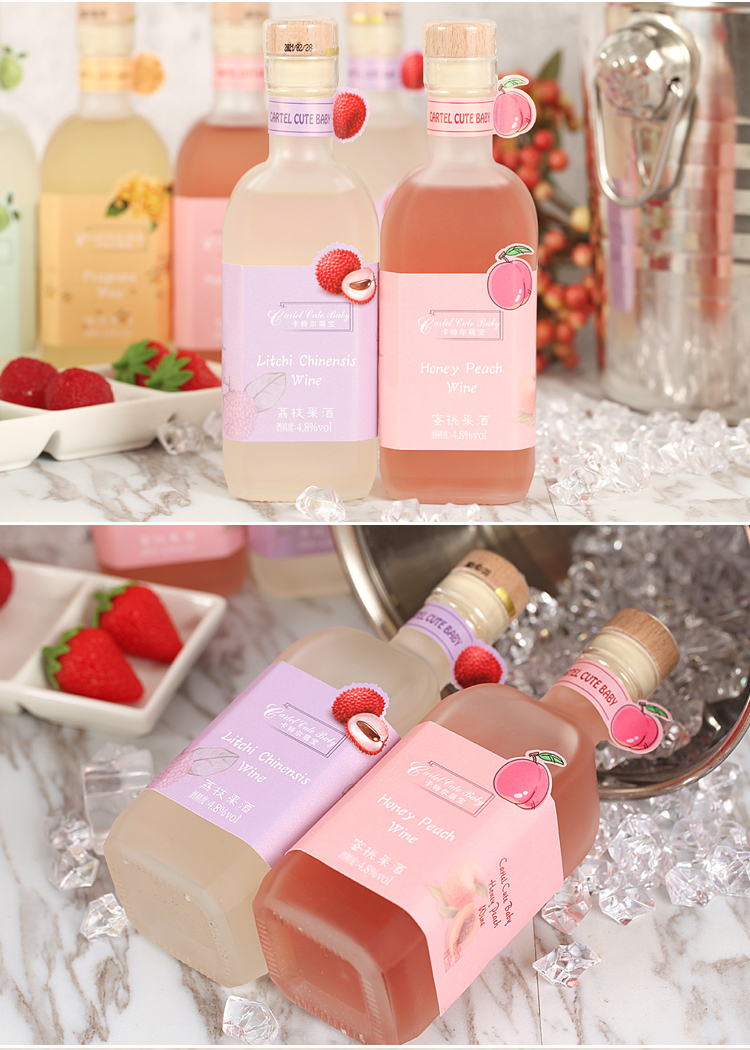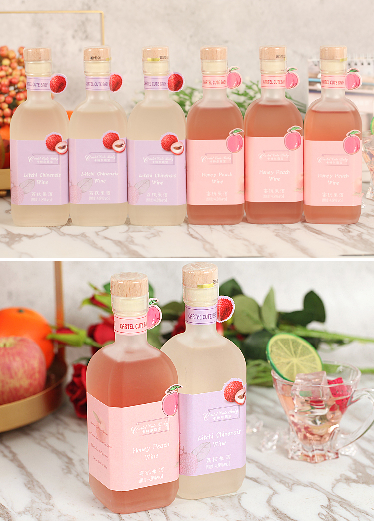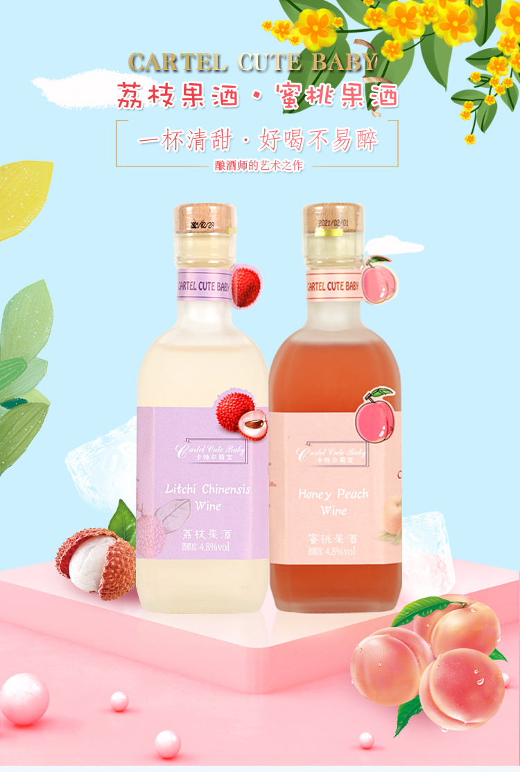 商品名称:卡特尔高颜值甜酒女士果酒微醺少女起泡酒酒荔枝口味和蜜桃口味组合358ml*2支