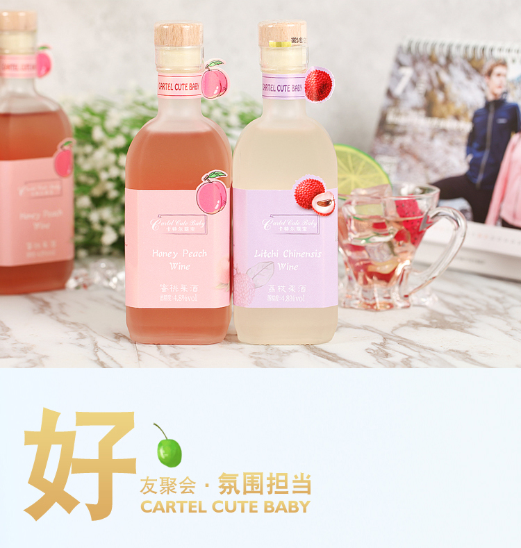 卡特尔高颜值甜酒女士果酒微醺少女起泡酒酒荔枝口味和蜜桃口味组合358ml*2支