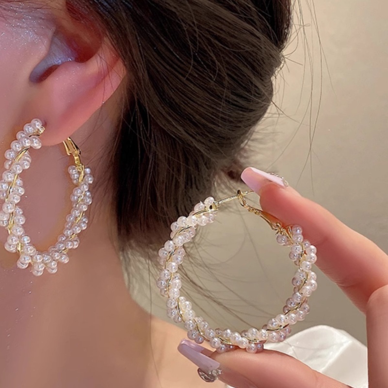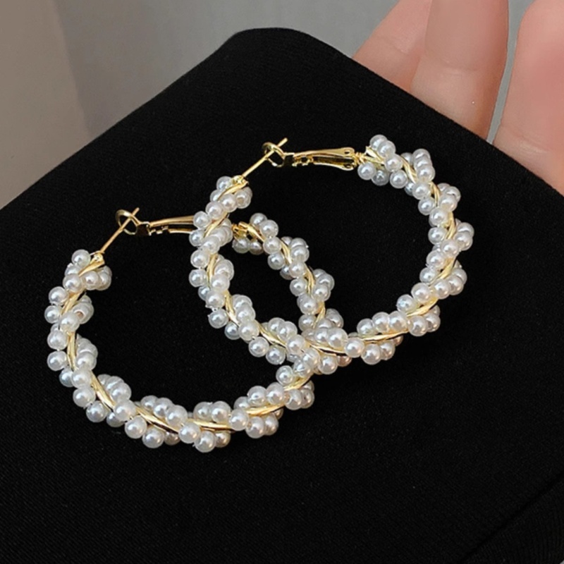 彤彤兔 S925银针线圈珍珠耳环女气质高级感耳环百搭轻奢时尚串珠耳饰