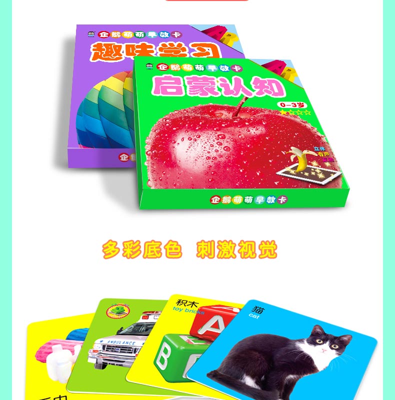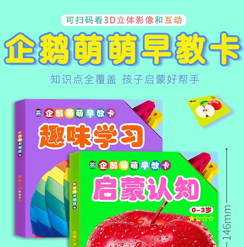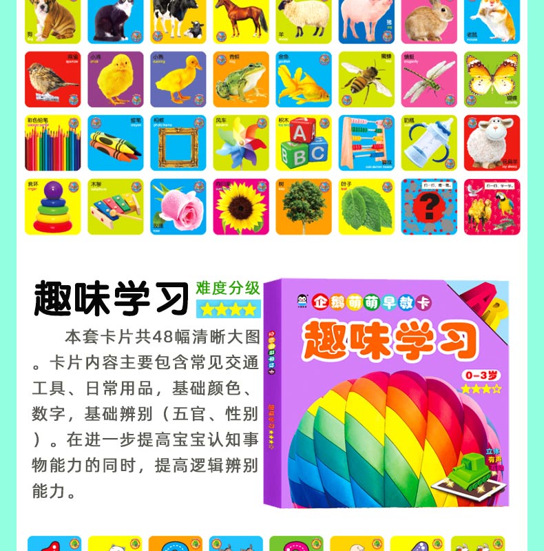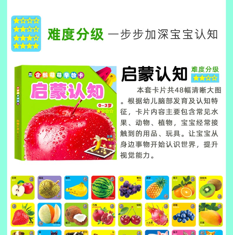 包邮秒杀企鹅萌萌早教卡启蒙认知0-3岁趣味学习+启蒙认知+基础认知+快乐学习2盒一组