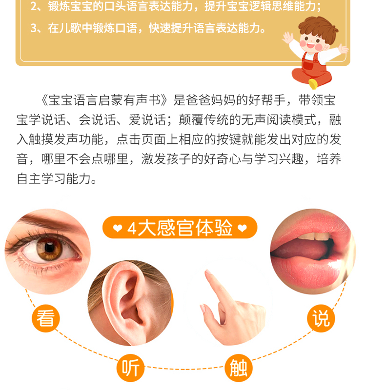 商品名称:包邮手指点读书宝宝语言启蒙发声书0-3岁幼儿早教有声书儿童学说话绘本早教学习礼物