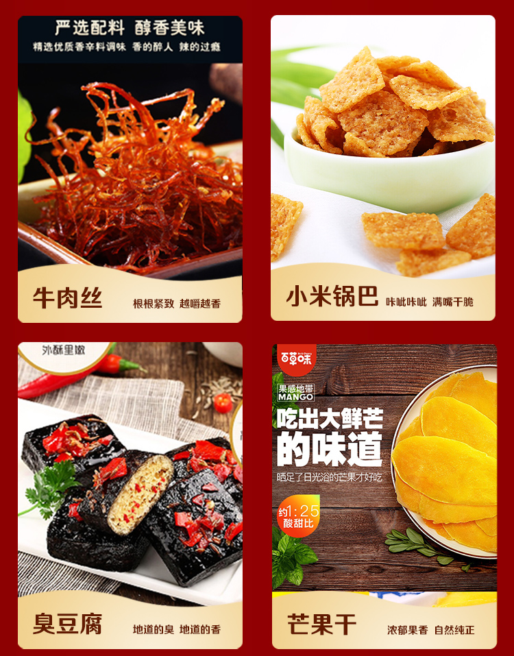 商品名称:百草味 年的味道零食礼盒1213g芒果干牛肉丝坚果大礼包网红下午茶休闲充饥夜宵礼盒