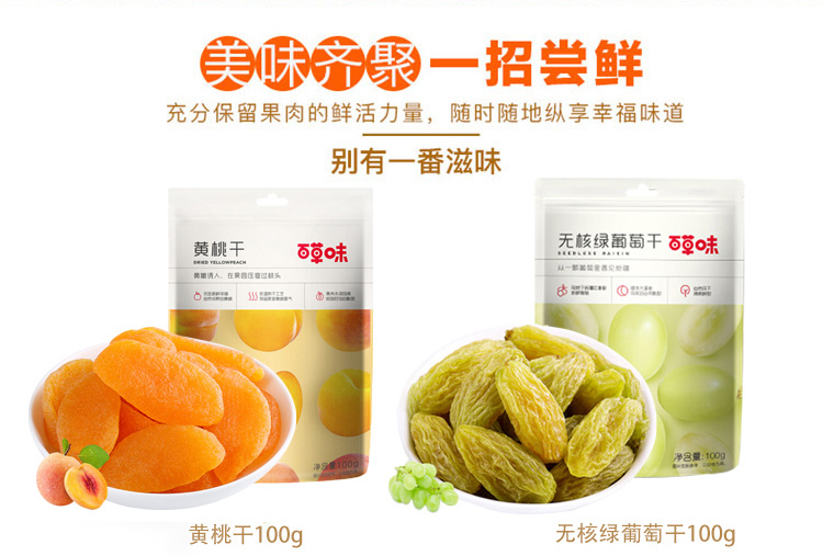 商品名称:百草味水果干组合200g葡萄干黄桃干芒果干零食大礼包网红下午茶休闲充饥夜宵
