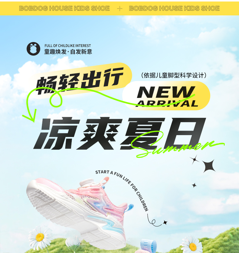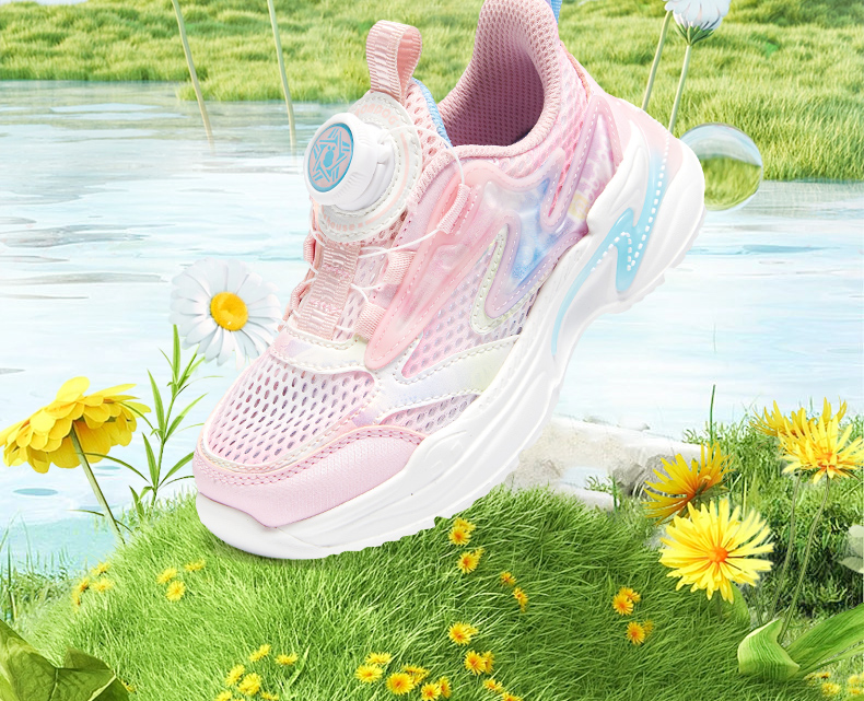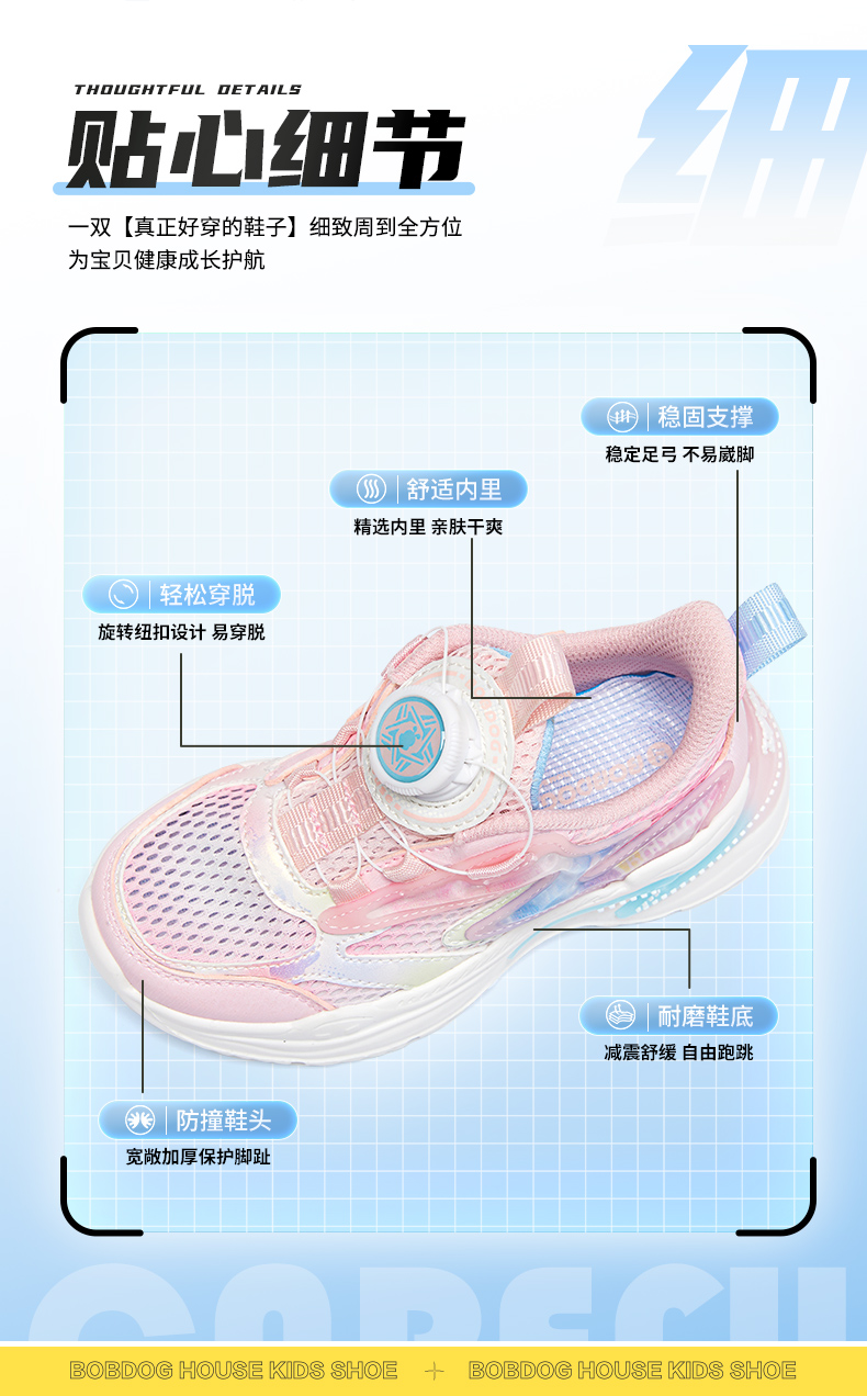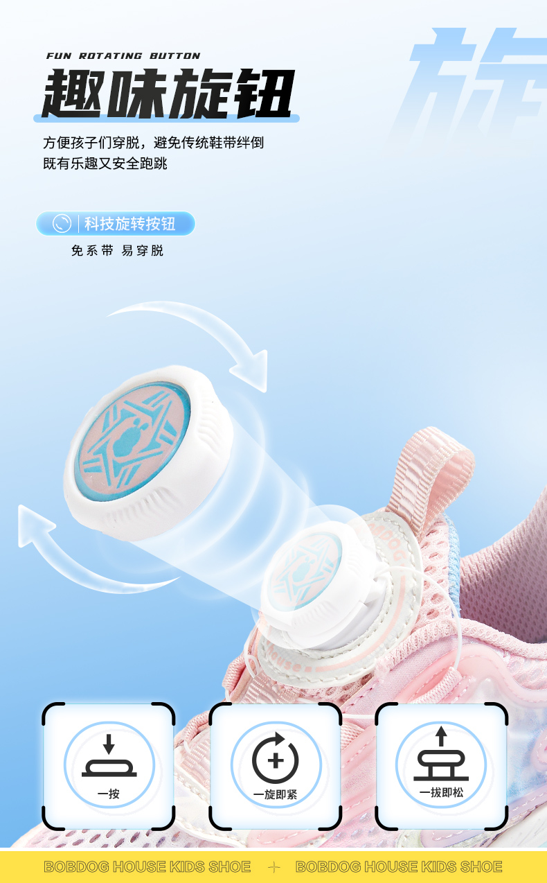商品名称:【热销爆款】2025夏季新款巴布豆house童鞋男女童旋转纽扣网面透气中大童休闲运动鞋
