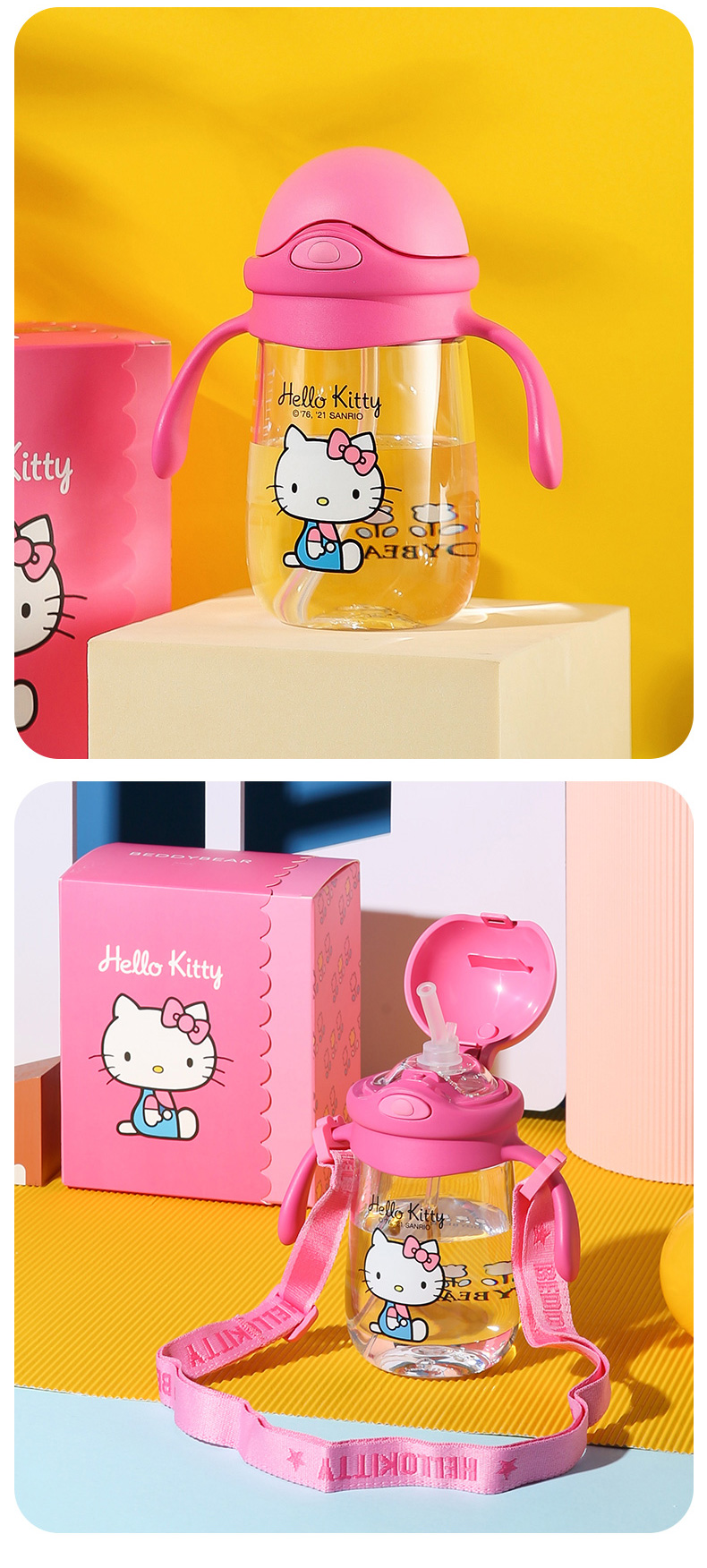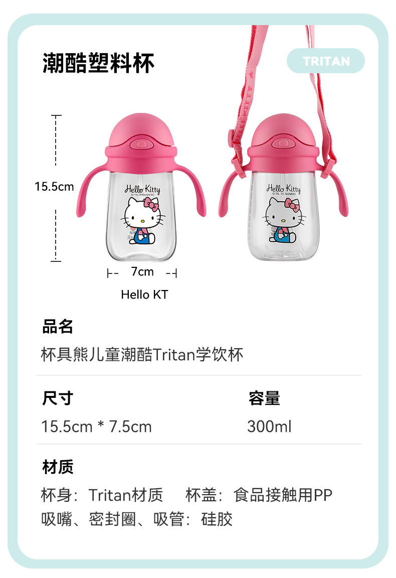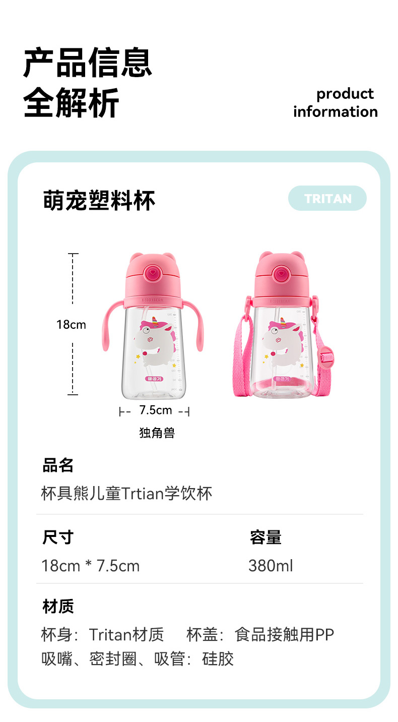 商品名称:【品牌秒杀】杯具熊夏季水杯一杯两用杯绳+把手直吸吸管杯水杯婴幼儿水杯tritan 380ml
