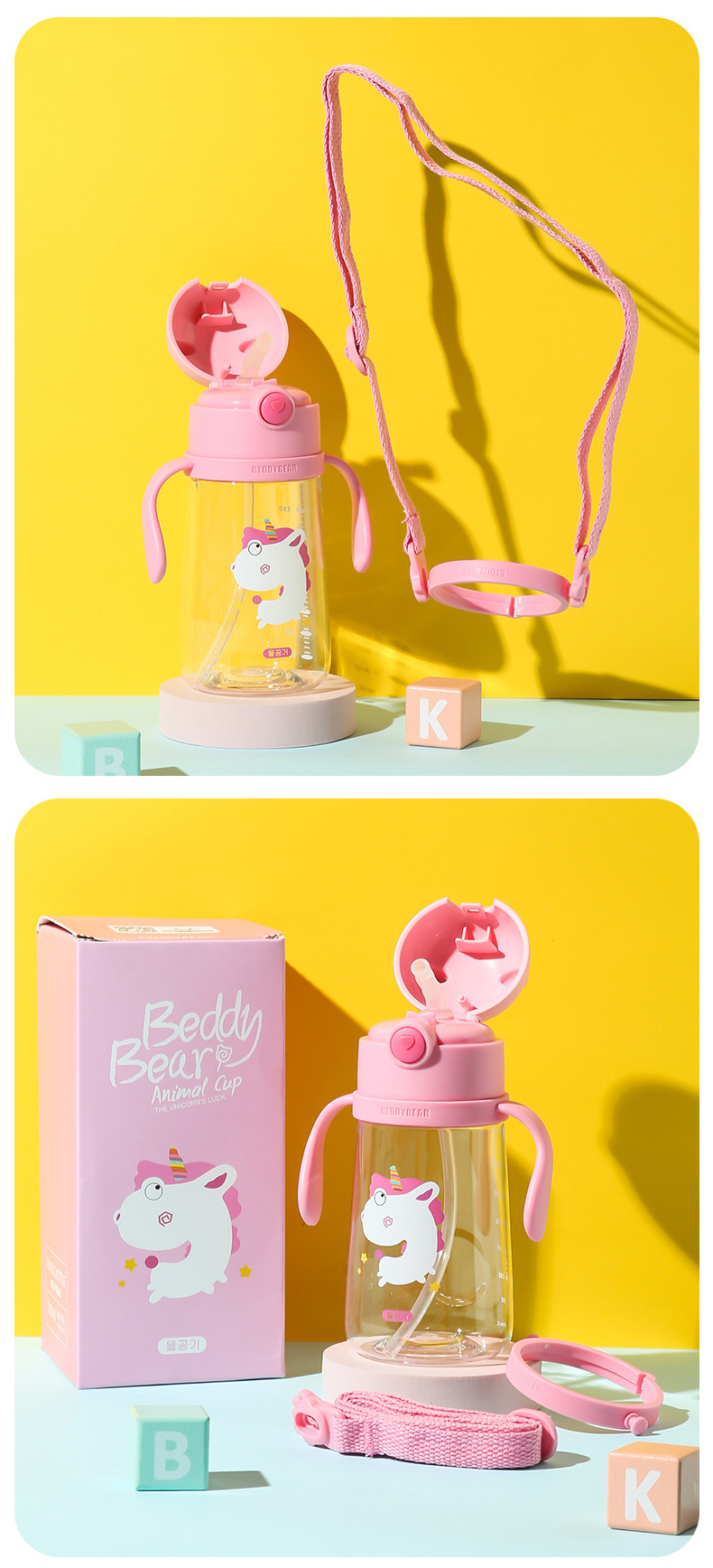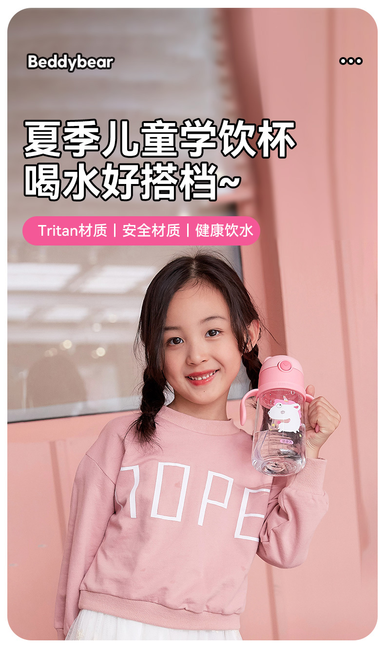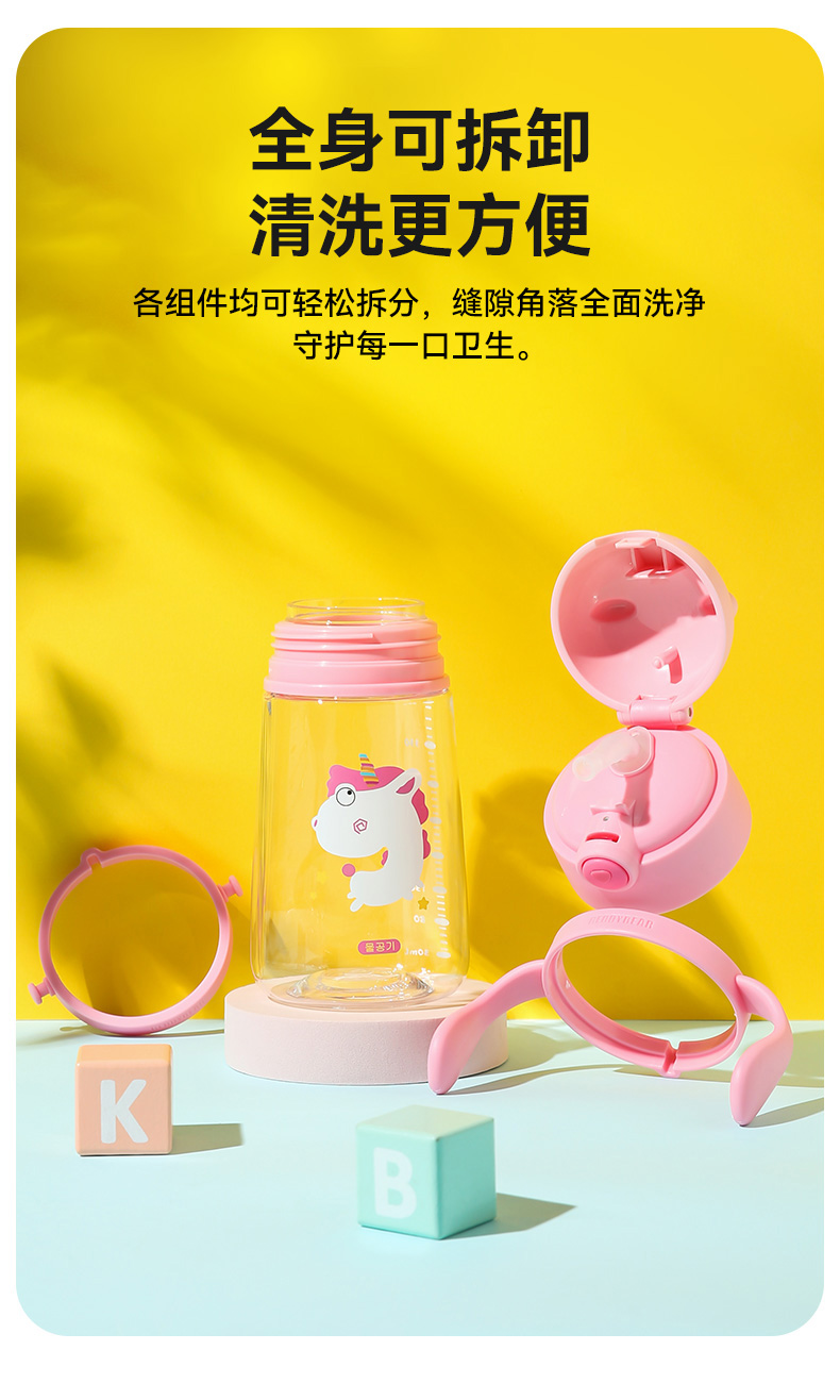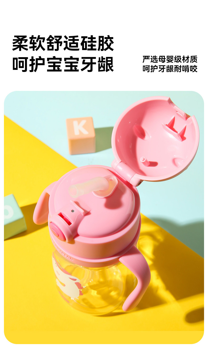 【品牌秒杀】杯具熊夏季水杯一杯两用杯绳+把手直吸吸管杯水杯婴幼儿水杯tritan 380ml